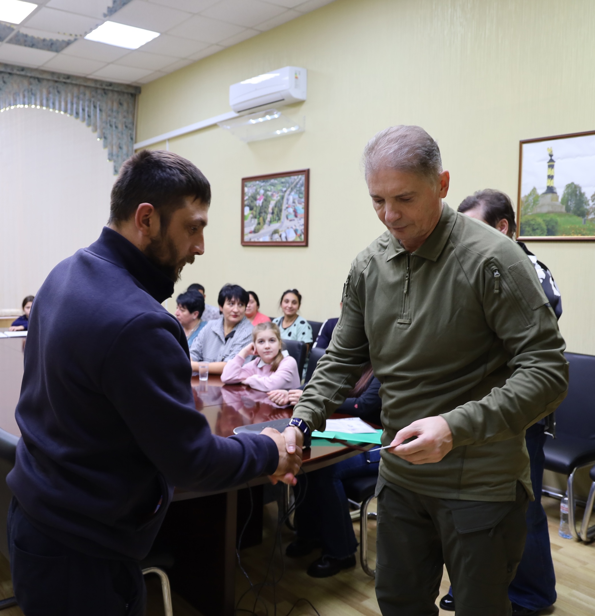 Также Андрей Белостоцкий вручил гражданам удостоверения «Жителя Курской области, вынужденно покинувшего территорию проживания».