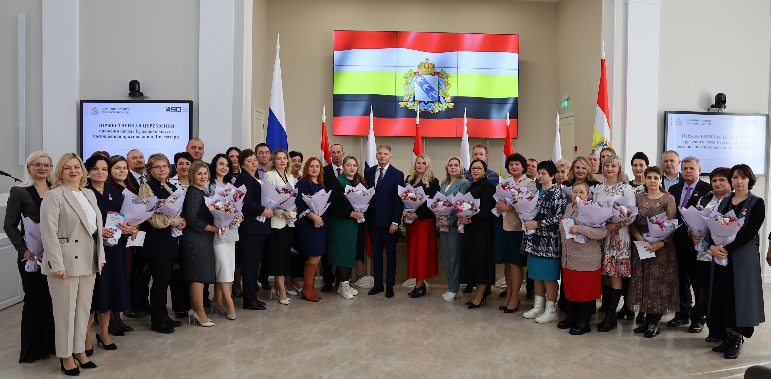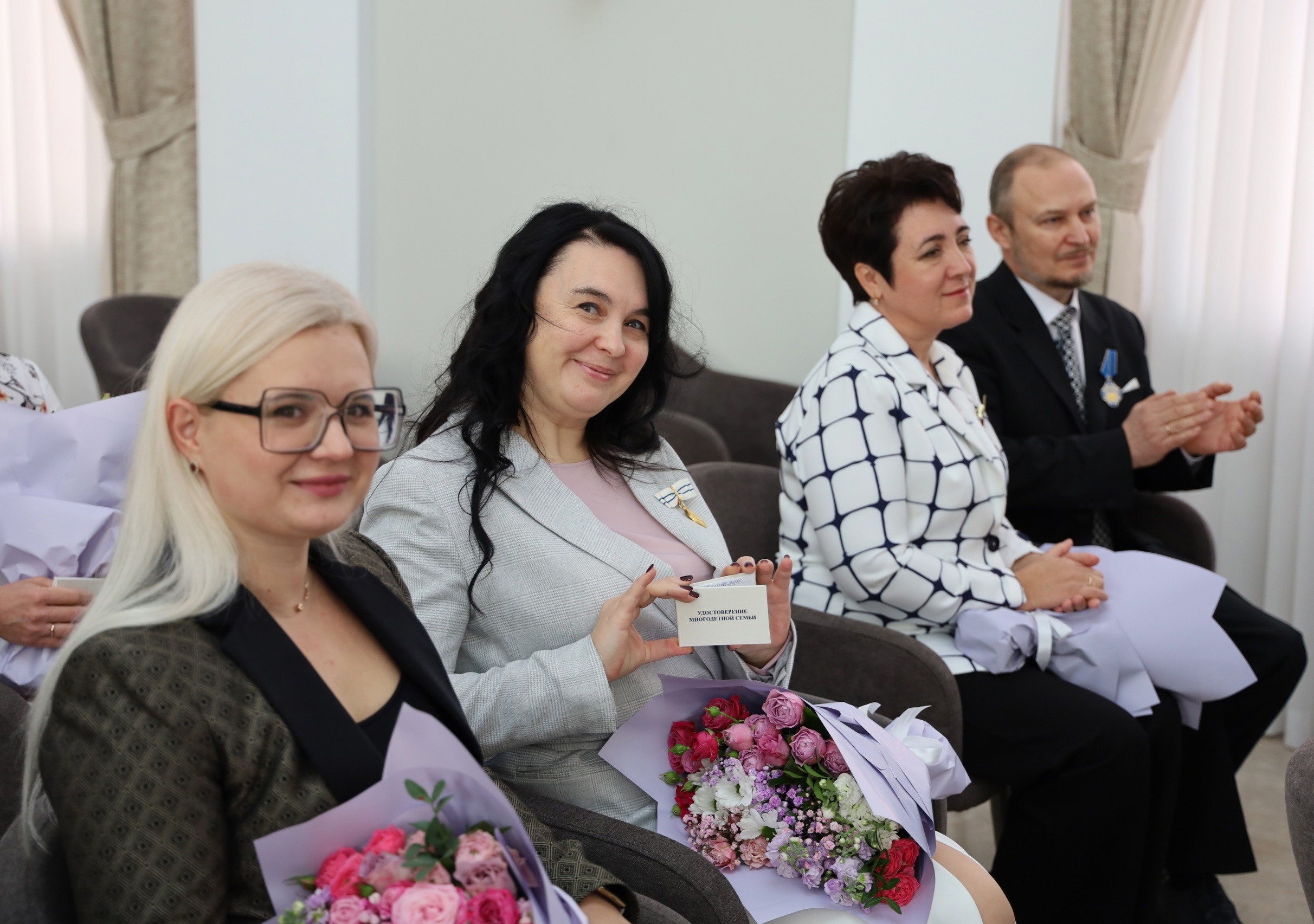 В Доме Советов прошла церемония награждения семей нагрудным знаком «За заслуги в воспитании детей», почетным знаком «Материнская слава – Отцовская доблесть», медалью «Мать героя». В мероприятии принял участие заместитель губернатора Курской области Андрей Белостоцкий.Награды получили 17 семей, среди них - жители курского приграничья. Также удостоверения многодетной семьи нового образца вручили 11 членам совета по делам многодетных семей при Губернаторе Курской области.