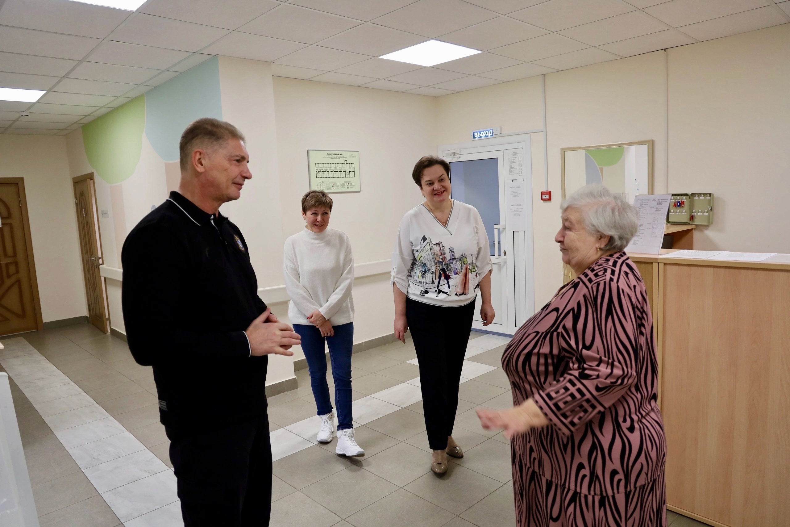 Врио заместителя губернатора Курской области Андрей Белостоцкий и врио министра социального обеспечения, материнства и детства региона Татьяна Сукновалова посетили пункт временного размещения на базе реабилитационного центра им. преподобного Феодосия Пече