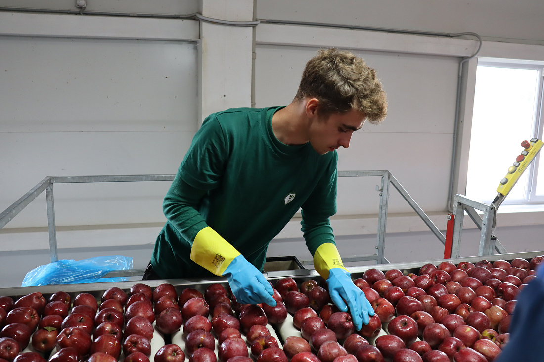 На предприятии есть линия сортировки яблок, холодильная камера, упаковочный аппарат, линия производства сока. В сутки мощный пресс перерабатывает 20 тонн яблок. На линии работают 3 смены по 18 человек.