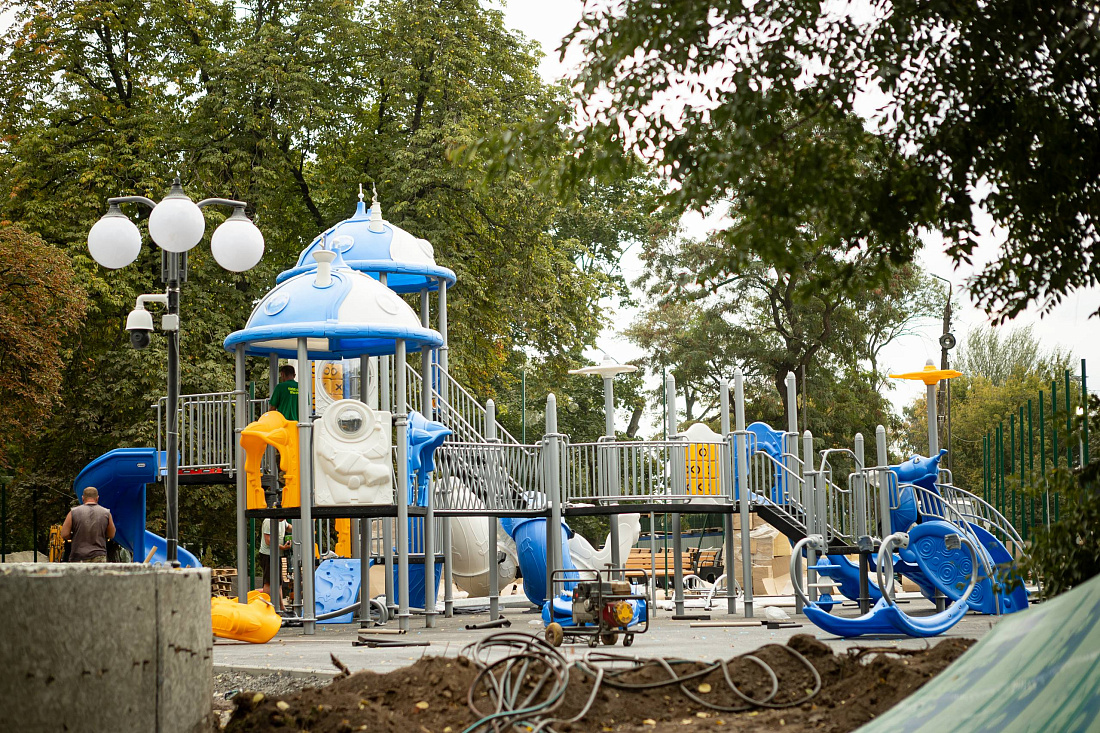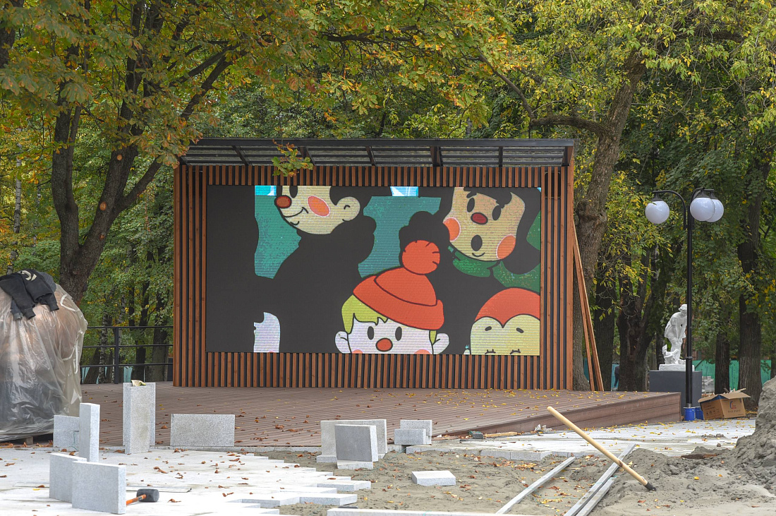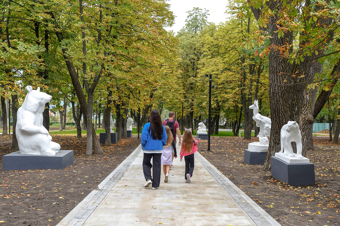 В парке привели в порядок входную группу: установлены надпись с историческим названием «Парк пионеров» и скульптуры пионеров. Отремонтированы и размещены на своих местах 11 фигур животных и сказочных персонажей.