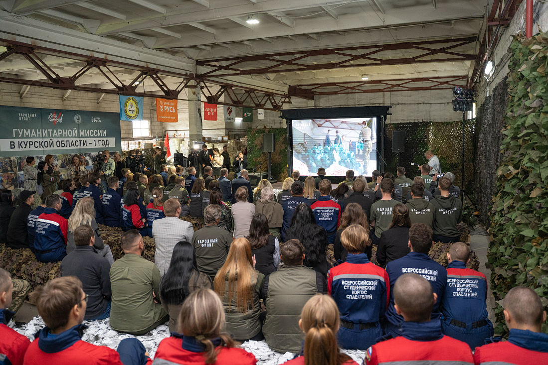 На базе Объединенного гуманитарного штаба Народного фронта, Всероссийского студенческого корпуса спасателей и благотворительного фонда «Банк еды «Русь» состоялась встреча волонтеров, приуроченная к первой годовщине работы штаба в Курской области. Активисты рассказали, как здесь организована работа, какие задачи удалось выполнить за прошедшее время.