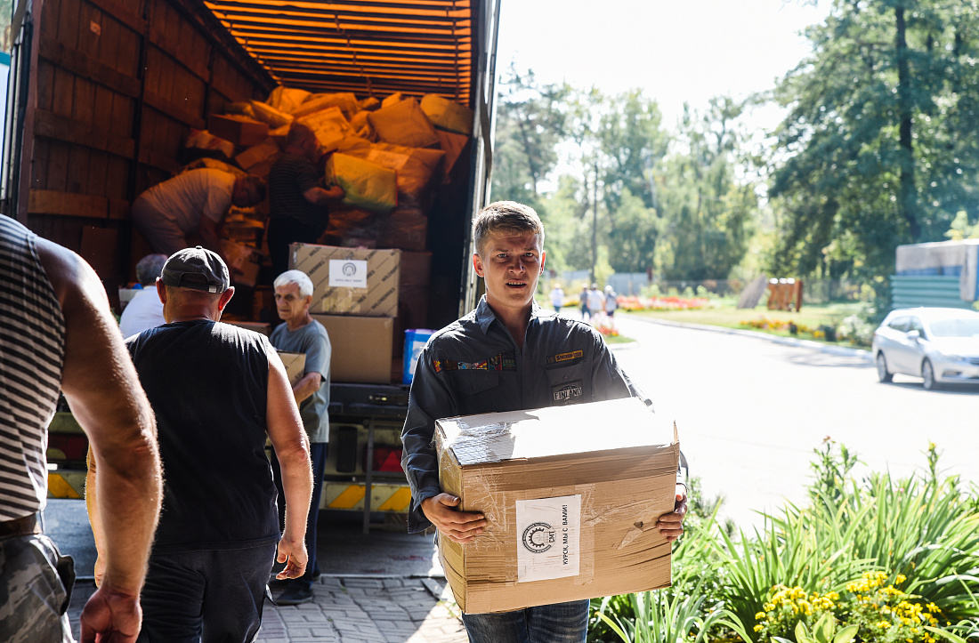 В Курскую область продолжает поступать гуманитарная помощь из разных регионов страны. В пункт временного размещения на базе оздоровительного лагеря «Олимпиец» привезли благотворительный груз, собранный нижегородцами.
