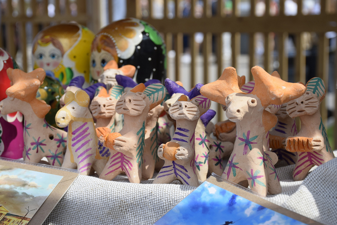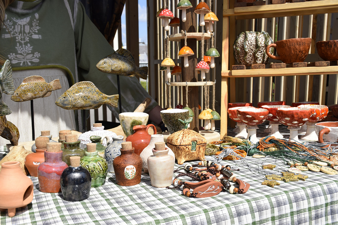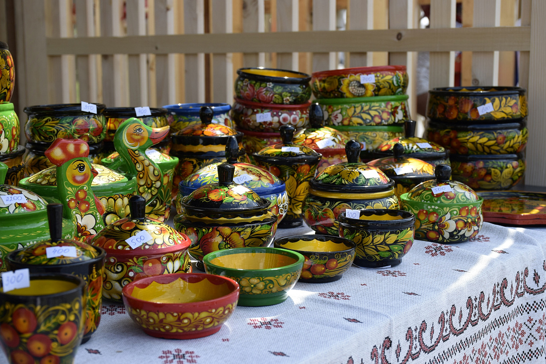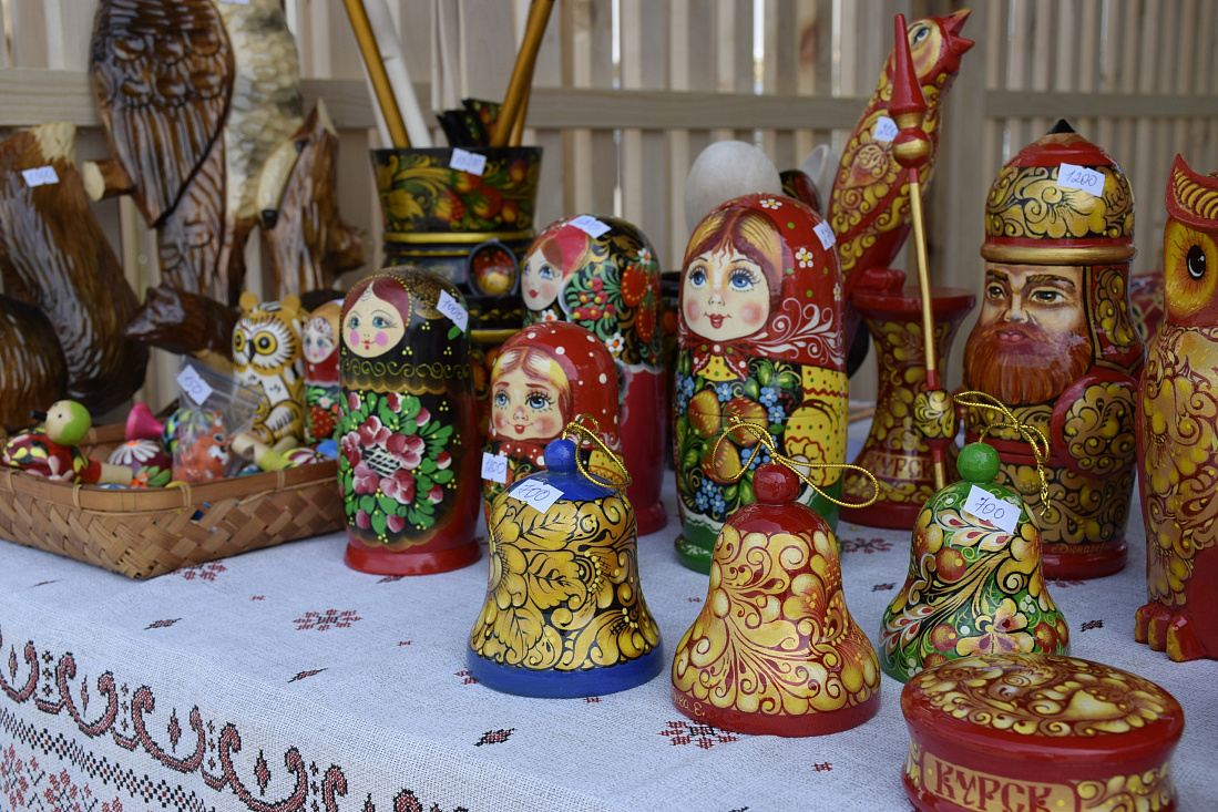 На ярмарке курские мастера представили изделия народных промыслов: курские пряники, кожлянские игрушки, утварь и сувениры, расписанные курской хохломой.