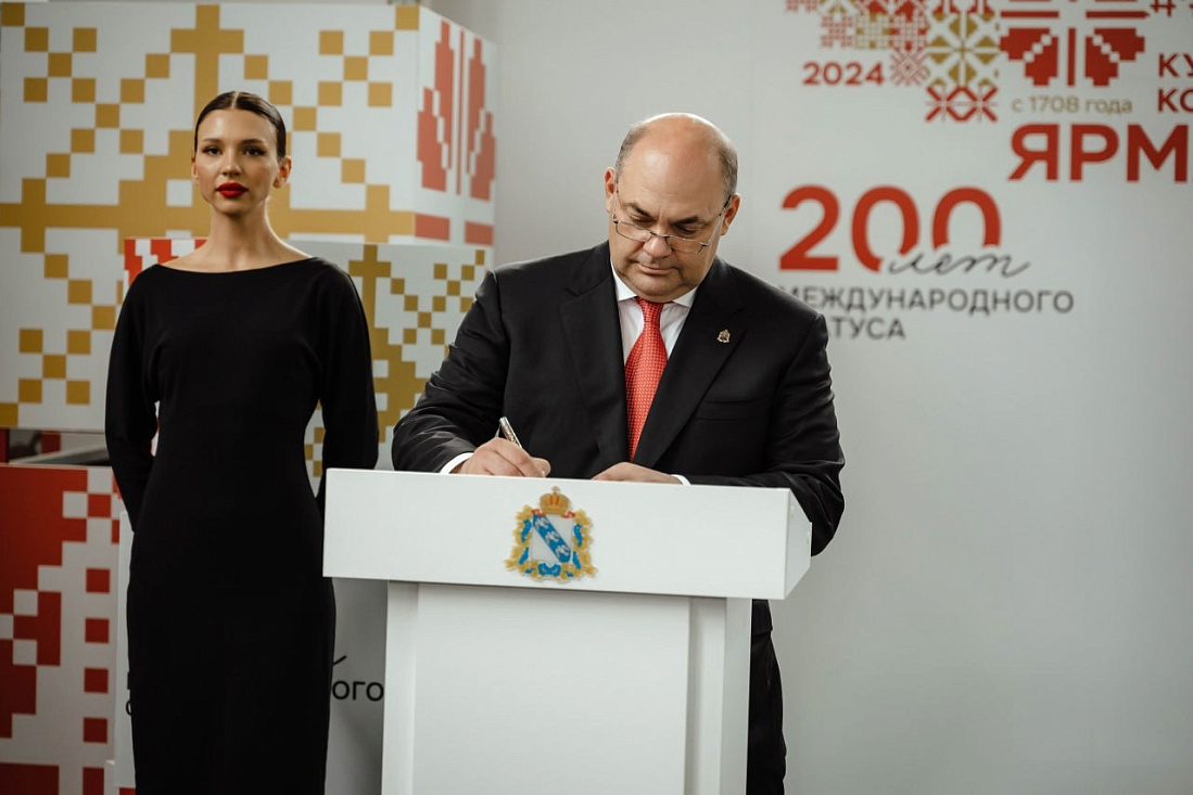 В рамках Курской Коренской ярмарки в местечке Свобода заключено 19 соглашений о сотрудничестве. Из них 5 подписал врио губернатора Курской области Алексей Смирнов.