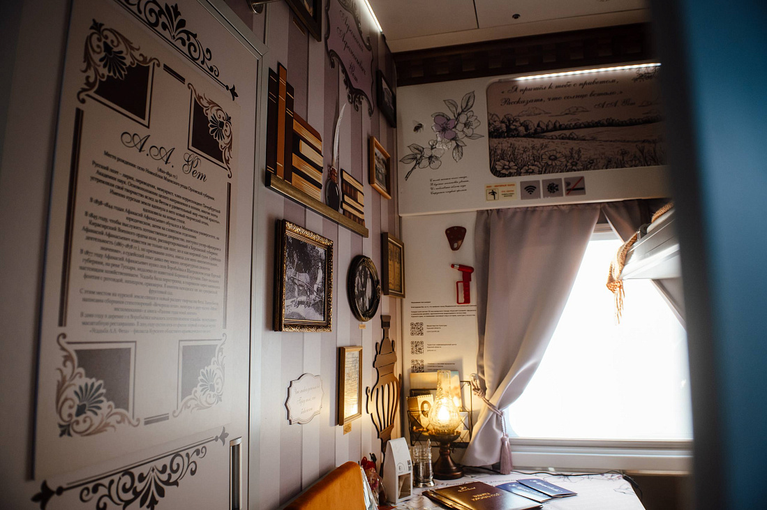 По инициативе врио губернатора Александра Хинштейна один из вагонов оформлен как туристический мини-музей, где каждое купе рассказывает о знаменитых курянах, которые прославили регион. Среди них Михаил Щепкин, Афанасий Фет, Надежда Плевицкая, Александр Дейнека, Аркадий Гайдар, Борис Дежкин, Даниил Гранин, Георгий Свиридов. На маршруте будут работать 2 состава с одинаковыми музеями.