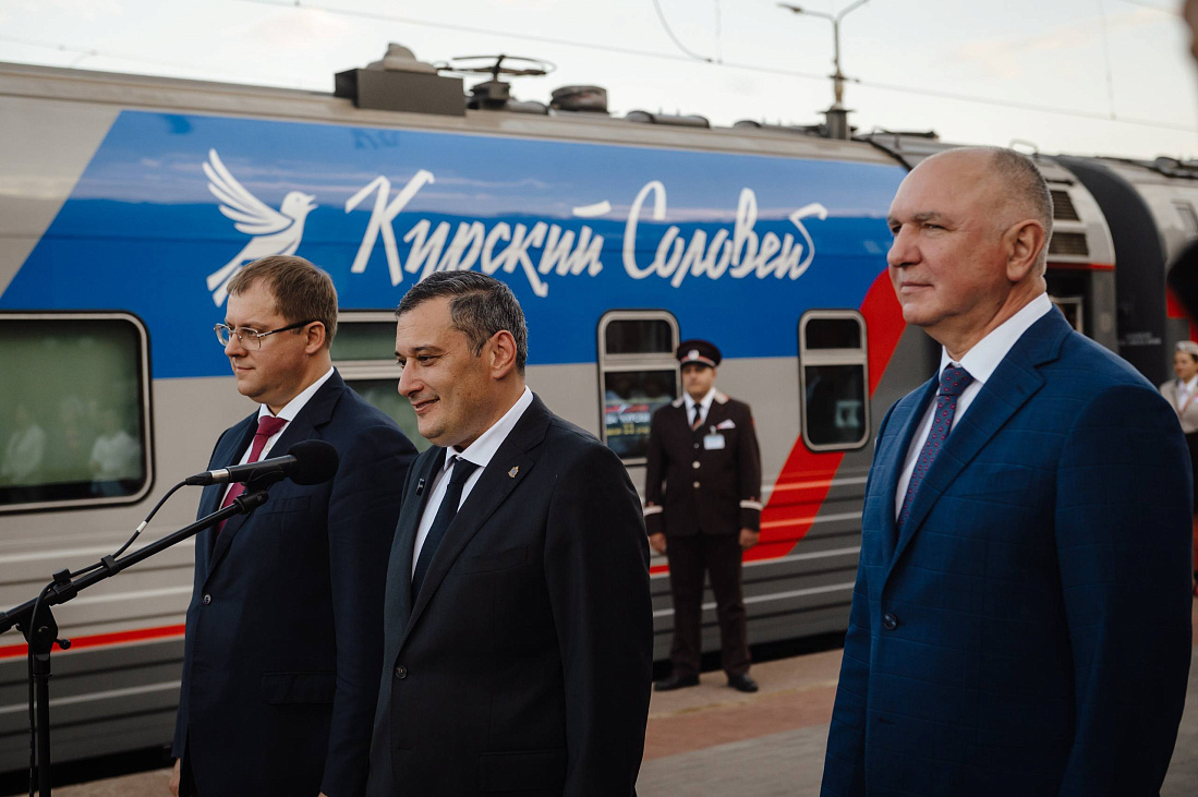 «Мы не просто возвращаем поезд на маршрут, мы возвращаем ему имя, которое подарили жители региона. Название «Курский Соловей» из народного теперь стало официальным и узнаваемым именем состава. В комфортабельных вагонах разных классов все продумано для удобства пассажиров, кроме того, мы создали уникальное культурное пространство на колесах. Главной особенностью поезда стал тематический вагон «Таланты Курского края», – отметил Олег Белозеров.