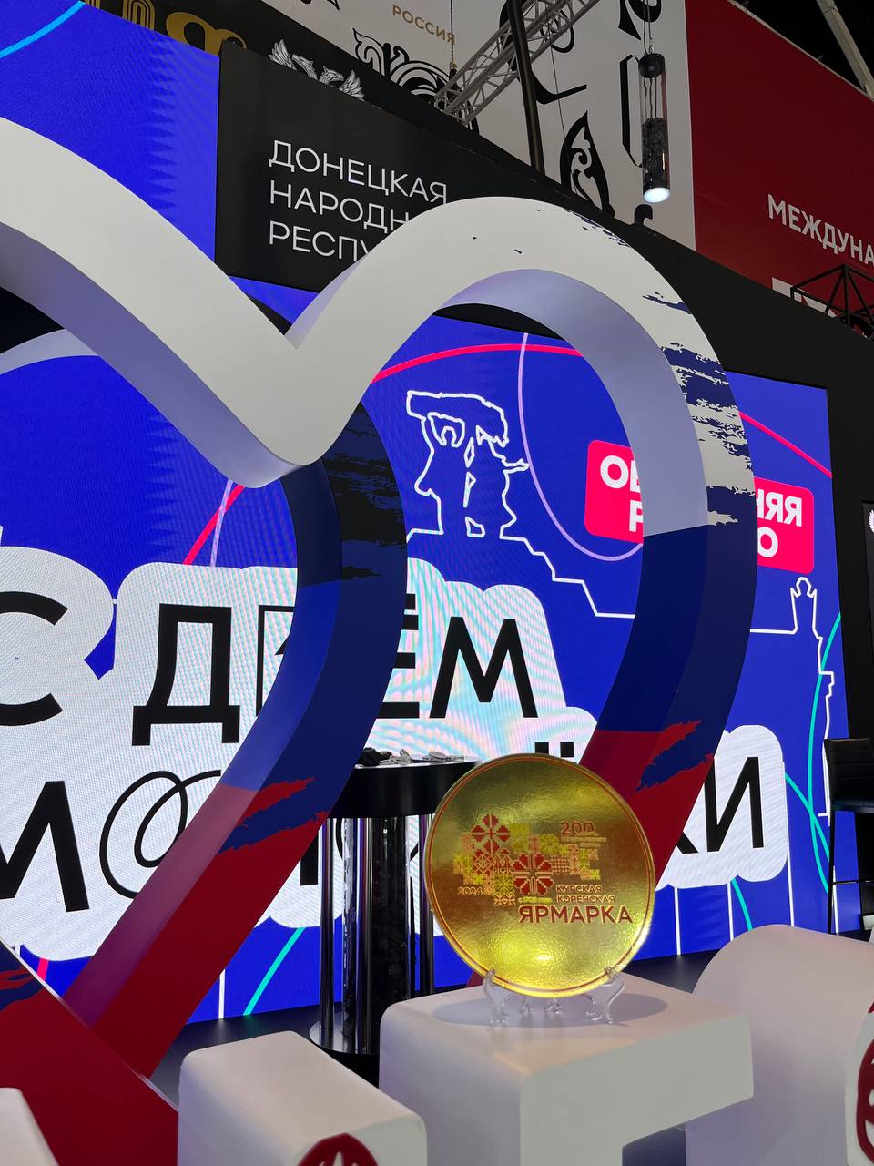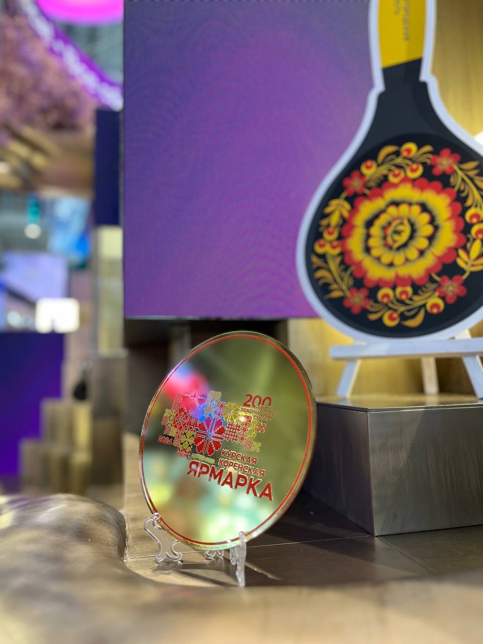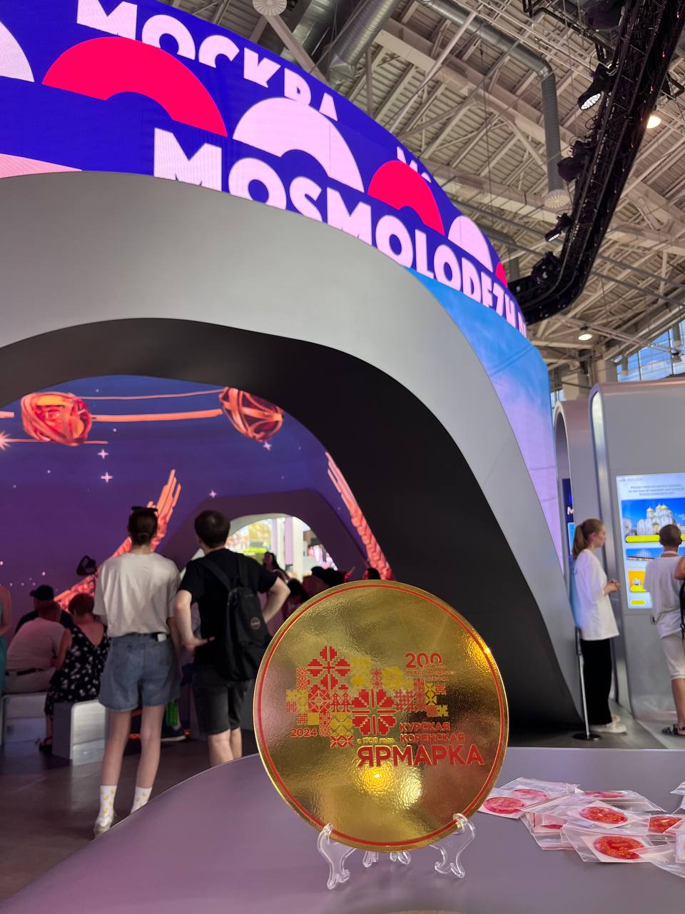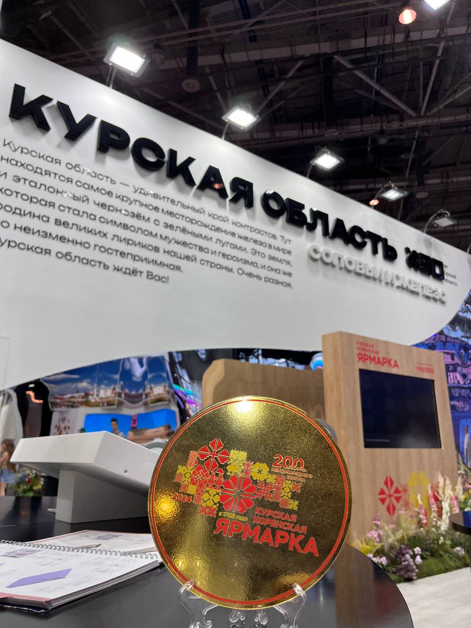 Золотые памятные медали с изображением логотипа Курской Коренской ярмарки украсили стенды всех регионов-участников Международной выставки-форума «Россия». Их изготовили по инициативе врио губернатора Курской области Алексея Смирнова ко Дню Коренской ярмарки, который состоялся в Москве с участием официальной делегации региона, местных производителей и творческих коллективов.