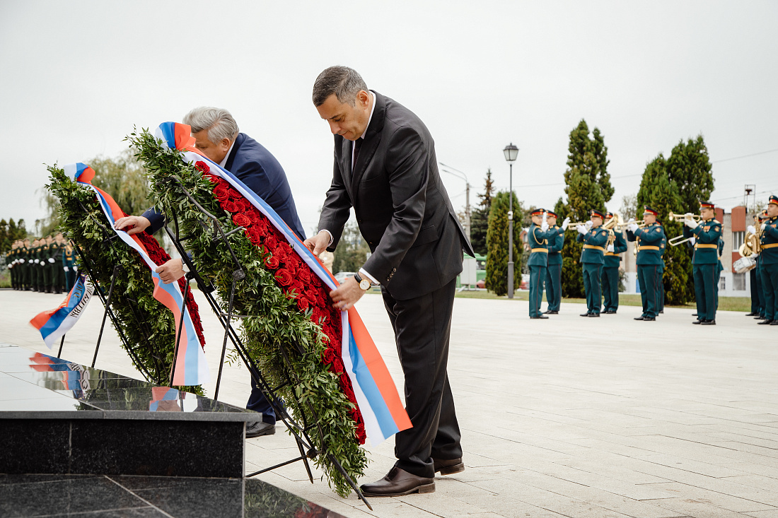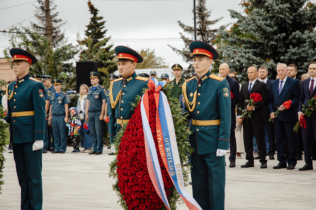 В память о героях, отдавших свою жизнь в борьбе с немецко-фашистскими захватчиками, жители областного центра возложили цветы и венки к Вечному огню на мемориальном комплексе «Курская дуга». В церемонии приняли участие врио губернатора Александр Хинштейн и заместитель председателя Российского военно-исторического общества Николай Овсиенко.