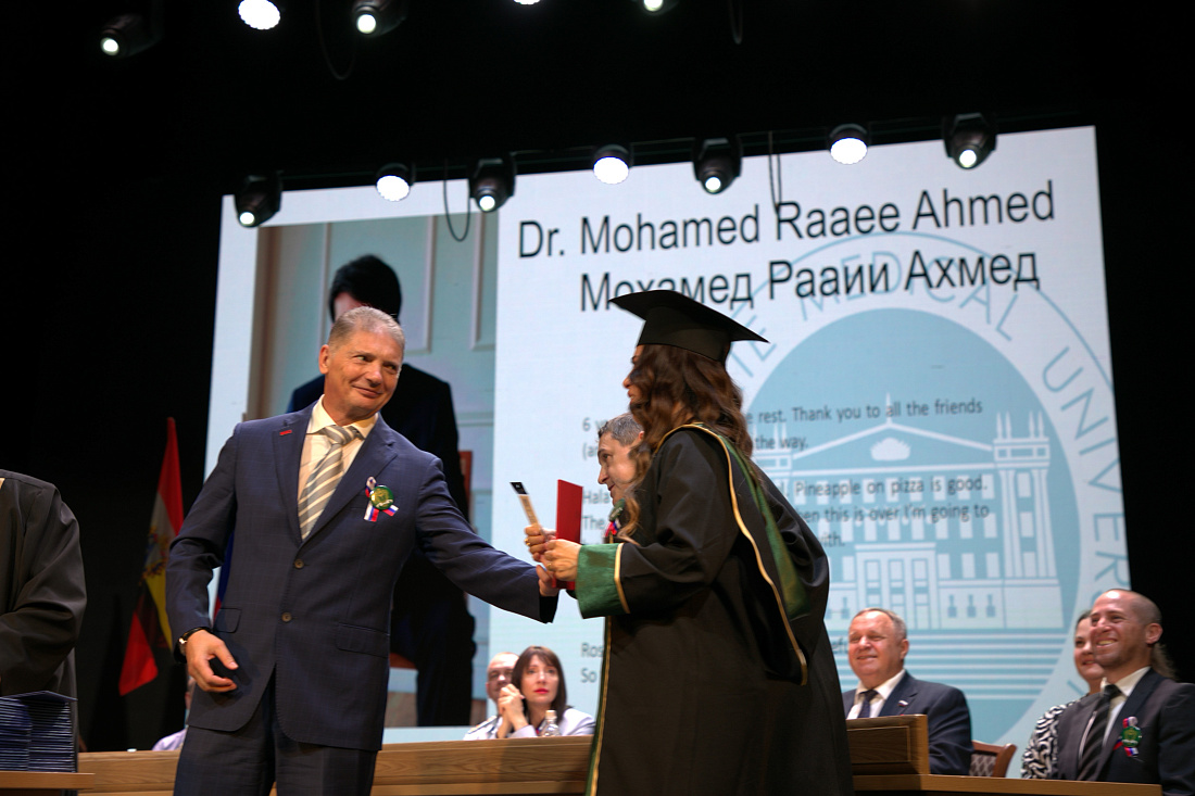 «Курский государственный медицинский университет первым в России начал обучение иностранных граждан на английском языке. Многие выпускники успешно сдают квалификационные экзамены у себя на Родине и становятся настоящими профессионалами в области здравоохранения. Поздравляю вас с важным и знаменательным днем, когда вы начинаете собственный путь в самую прекрасную и благородную профессию», – отметил Андрей Белостоцкий.