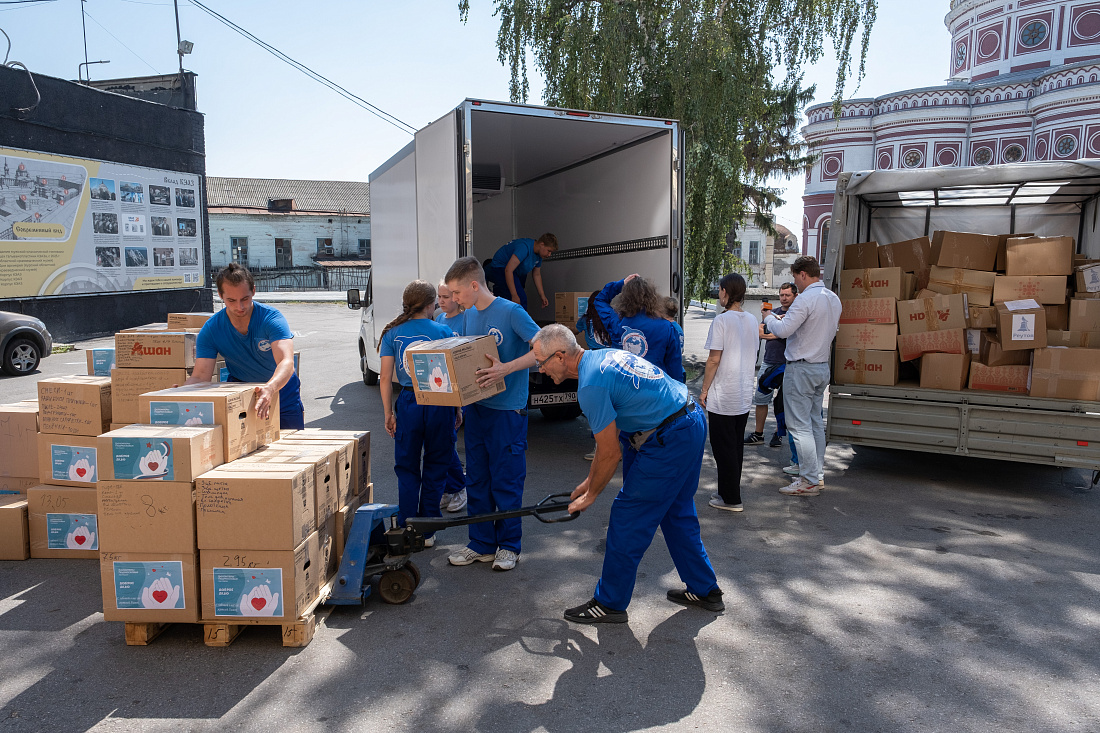 В Курск привезли стандартизированные наборы гуманитарной помощи из Подмосковья