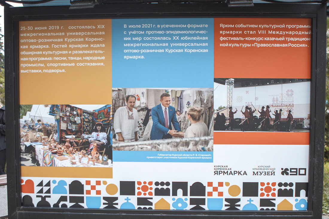 В сквере Юнармейцев возле библиотеки им. Н.Н. Асеева открылась выставка «Курская Коренская ярмарка – от настоящего к прошлому». На стендах – изображения и фотографии, посвящённые истории ярмарки, а также рассказывающие о её возрождении в XXI веке. Экспозицию подготовили специалисты Курского областного краеведческого музея.