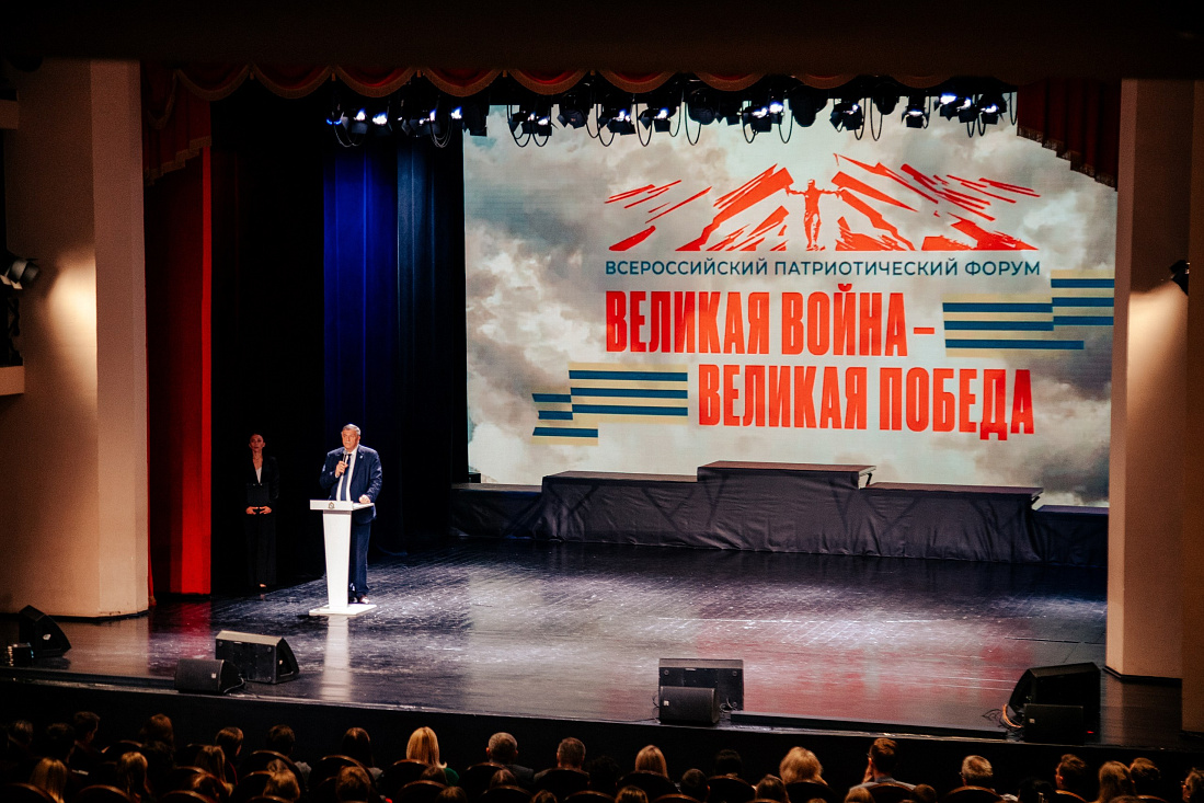 В областном Дворце молодежи прошло торжественное открытие Всероссийского патриотического форума «Великая война – Великая Победа». Масштабное событие объединило представителей вузов, общественных организаций и патриотических движений из 35 регионов России.