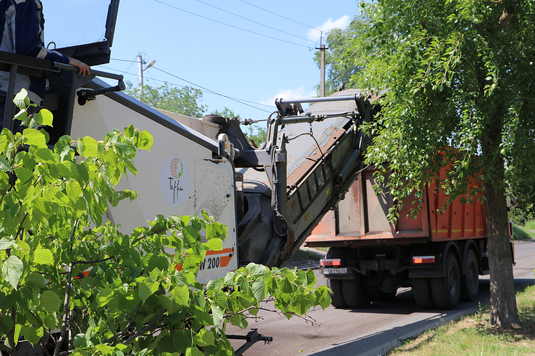 Протяженность объекта - более 960 м. Работы проводятся на двух участках, где сейчас специалисты подрядной организации выполняют фрезерование асфальтобетонного покрытия.