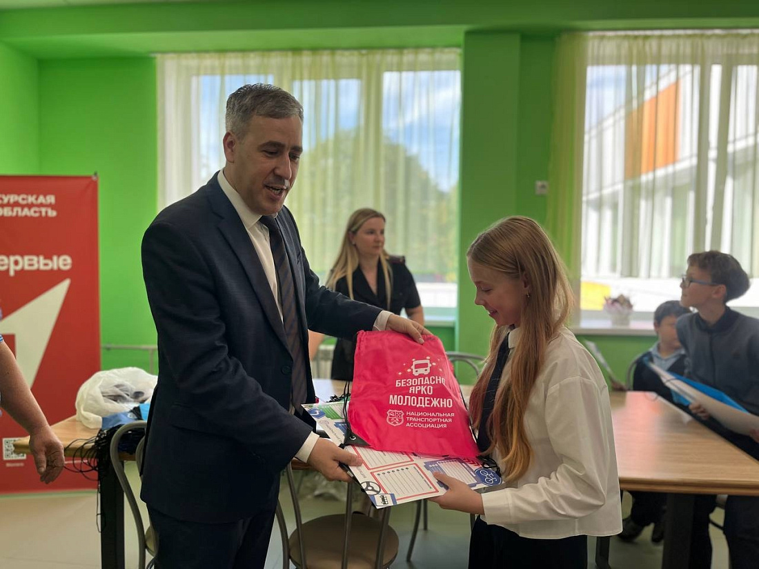 Во дворе школы ребят ожидал автобус «Волгабас». Вместе с исполнительным директором Курского филиала НТА Константином Марьясиным говорили о том, что такое слепые зоны, узнали, почему детям лучше входить в первые две двери: водитель не видит заднюю дверь из-за пассажиров на остановке. Обсудили, почему нельзя обходить автобус ни спереди, ни сзади.