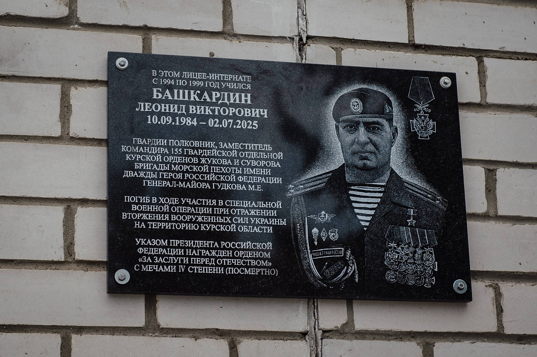 На здании лицея-интерната поселка им. Маршала Жукова установили мемориальную доску выпускнику Леониду Башкардину, погибшему в ходе СВО. Ее открыли родители офицера вместе с врио губернатора Курской области Александром Хинштейном. В памятном митинге также приняли участие сослуживцы, педагоги, кадеты и юнармейцы.