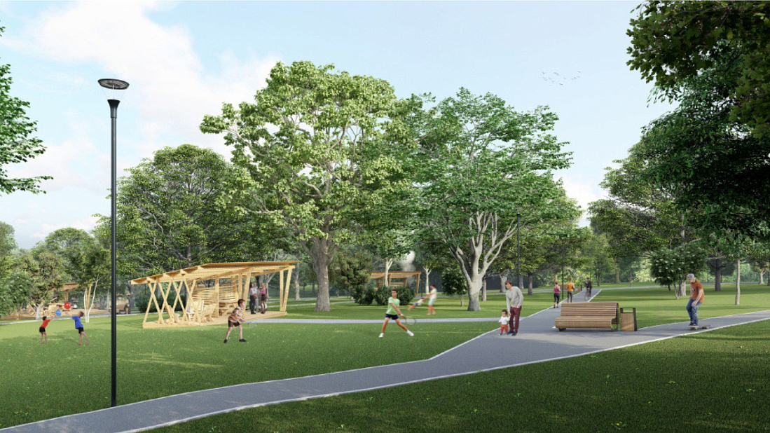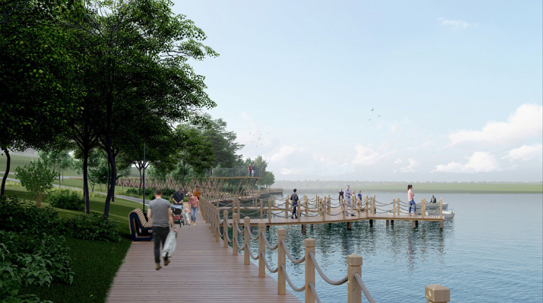 На первом этапе в парковом пространстве создадут функциональные зоны. Сначала благоустроят пространство у воды. Здесь появится пляжная зона с необходимой инфраструктурой, набережная с причалом и настилом из современных материалов, имитирующих деревянное покрытие. Планируют оборудовать смотровую площадку и сцену для проведения творческих вечеров и мероприятий на открытом воздухе. В планах – создание прогулочных зон и территории для тихого отдыха с беседками. Кроме того, будет обустроена автопарковка, светодиодное освещение, установлен общественный туалет.