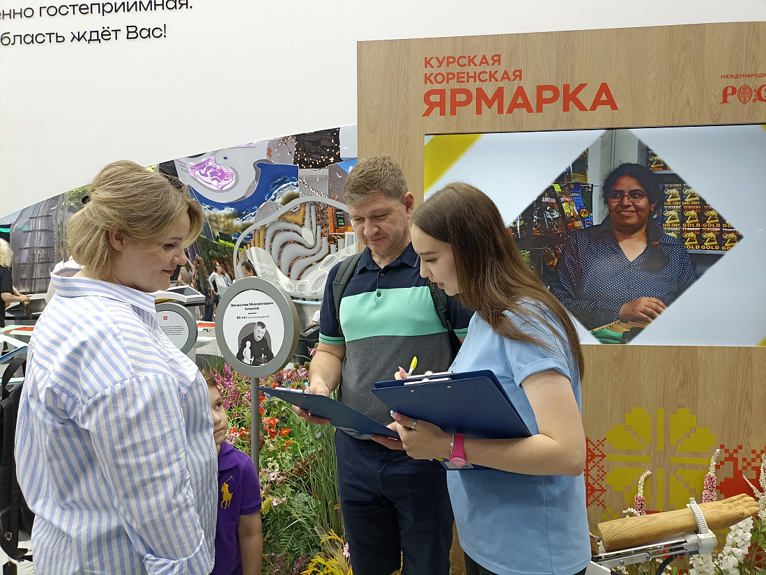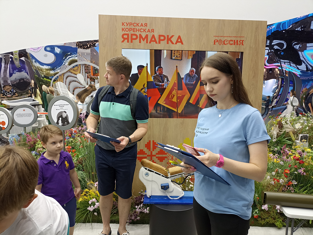 С 18 июня в Москве на Международной выставке-форуме «Россия» начала работать Курская Коренская ярмарка. На стенде нашего региона появились элементы брендирования в цветах флага региона, состоялись первые активности.