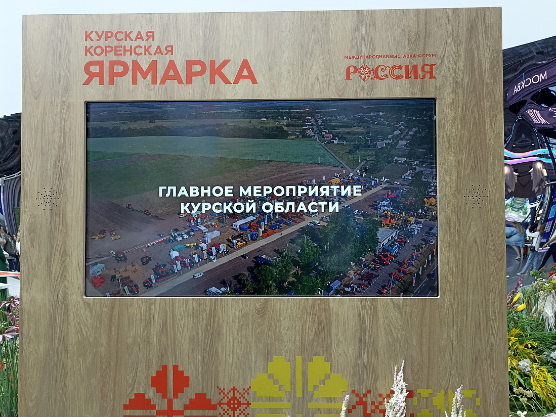 «Среди курских трав и цветов – в самой фактурной локации курского стенда — установили широкий пилон с видеоэкраном, на котором разместили паттерн и логотип Курской Коренской ярмарки и лого 200-летия присвоения ей международного статуса. Для посетителей транслируют ролики о форуме. Так мы хотели соединить природу и технологии. Все товары в курских торговых рядах украсят этикетки ярмарки, появится тематическая фотозона. Надеемся, что о нашей ярмарке узнают во многих уголках нашей большой Родины», - отметила врио министра приоритетных проектов развития территорий и туризма Курской области Анна Коновалова.