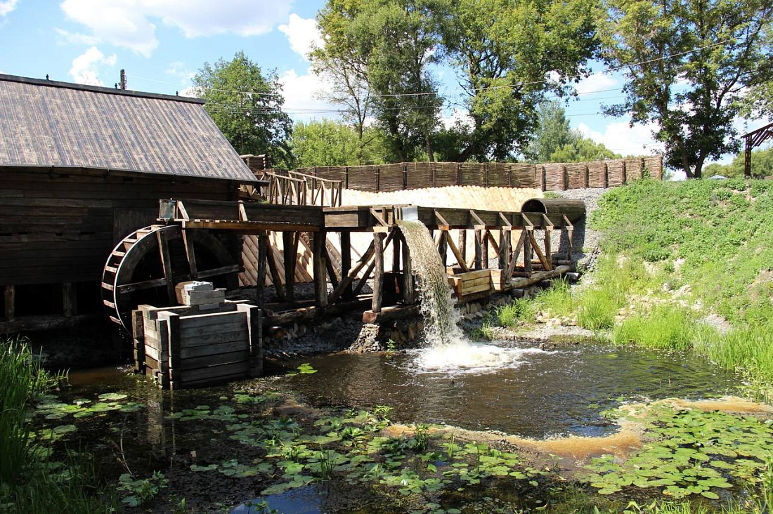 В этнодеревне Парка мельниц Пристенского района продолжается строительство подворий. В августе планируют завершить работы по обустройству дома мясника и молочника, подворью гончара. Уже возведены подворья кузнеца и плотника, ведутся подключение к коммуникациям и благоустройство территории. Заложен фундамент академического подворья.
