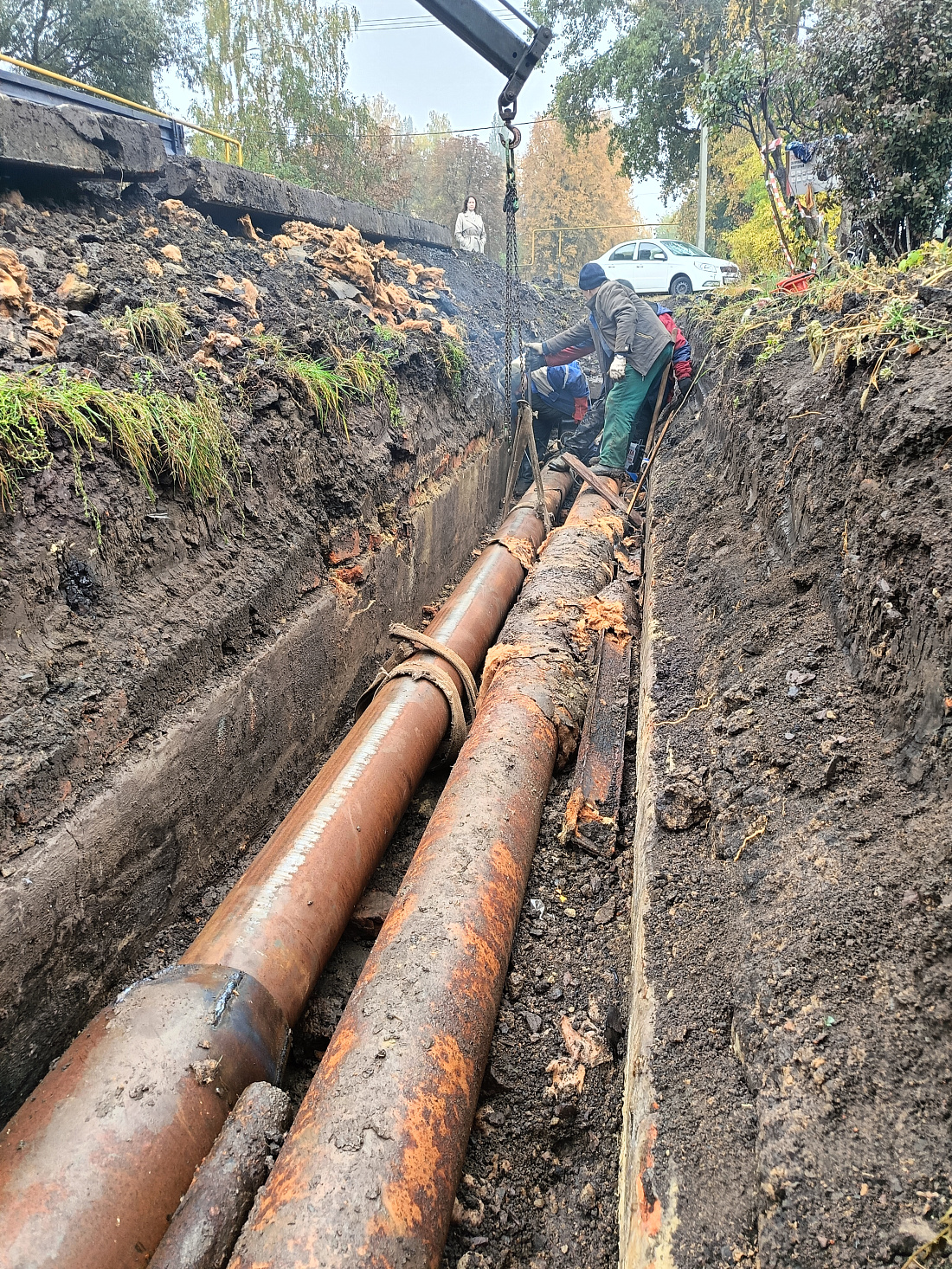 В Щиграх продолжают ремонт ветхого участка тепломагистрали