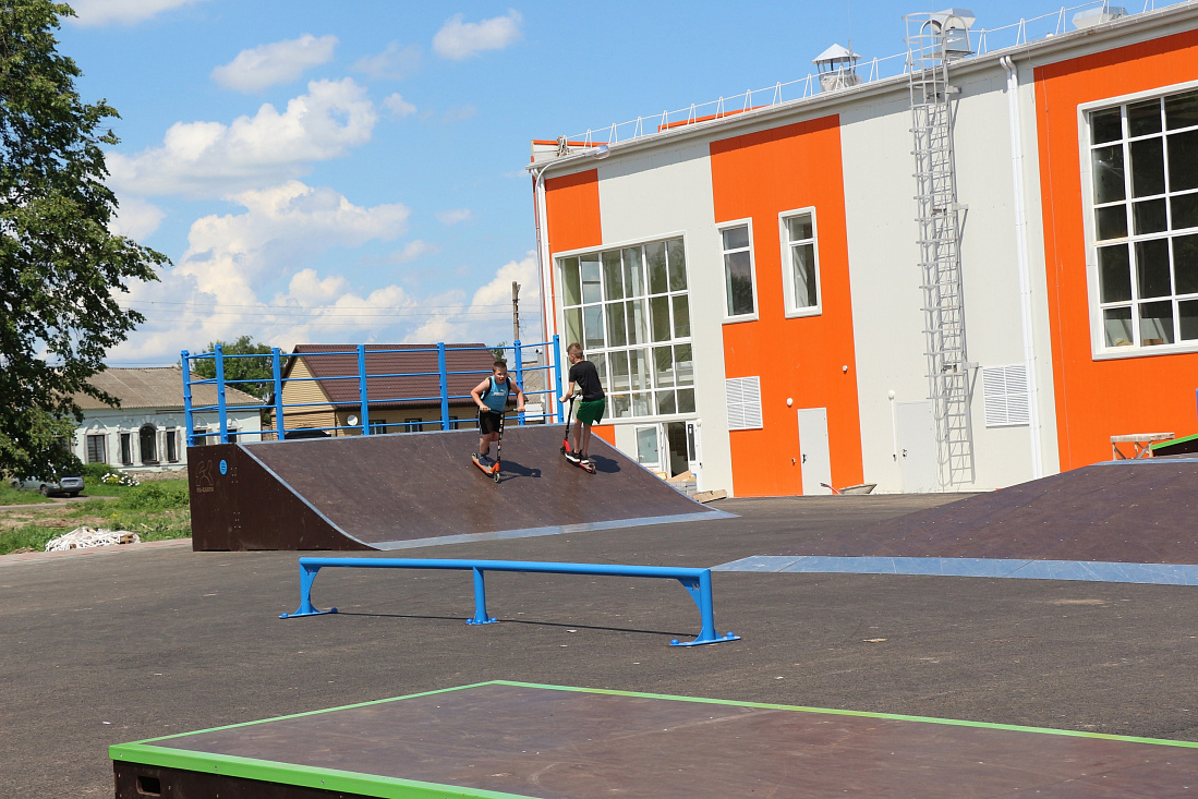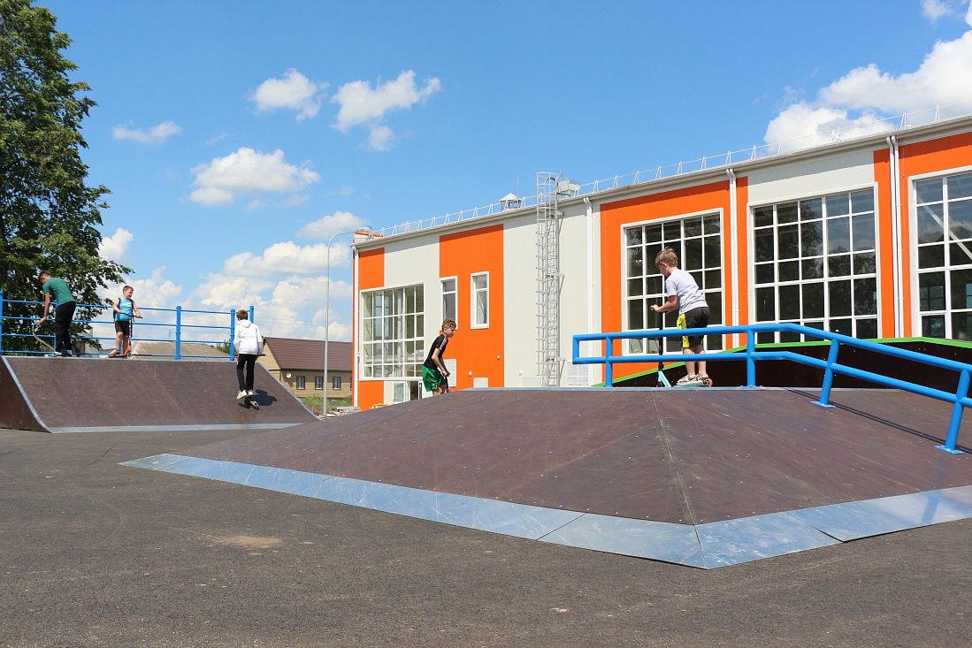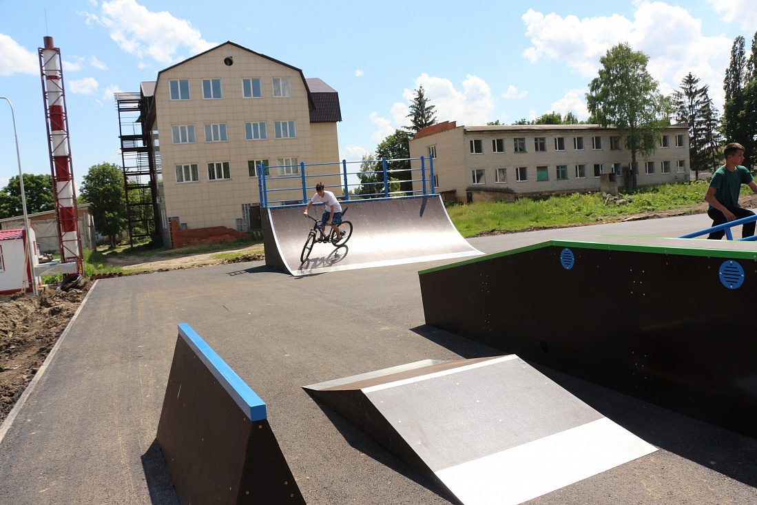 Ведется строительство ФОКа в Фатеже. Около его здания уже завершается благоустройство, оборудована в рамках муниципальной программы скейт-площадка.