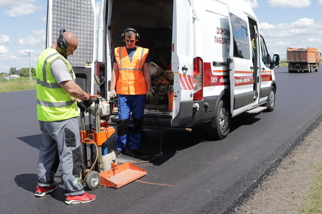 Качество укладки дорожного полотна проверили сотрудники выездной лаборатории ОКУ «Курскавтодор». Эксперты провели замеры толщины слоев покрытия, определили плотность уложенной смеси, предел прочности, коэффициент водостойкости и другие показатели.