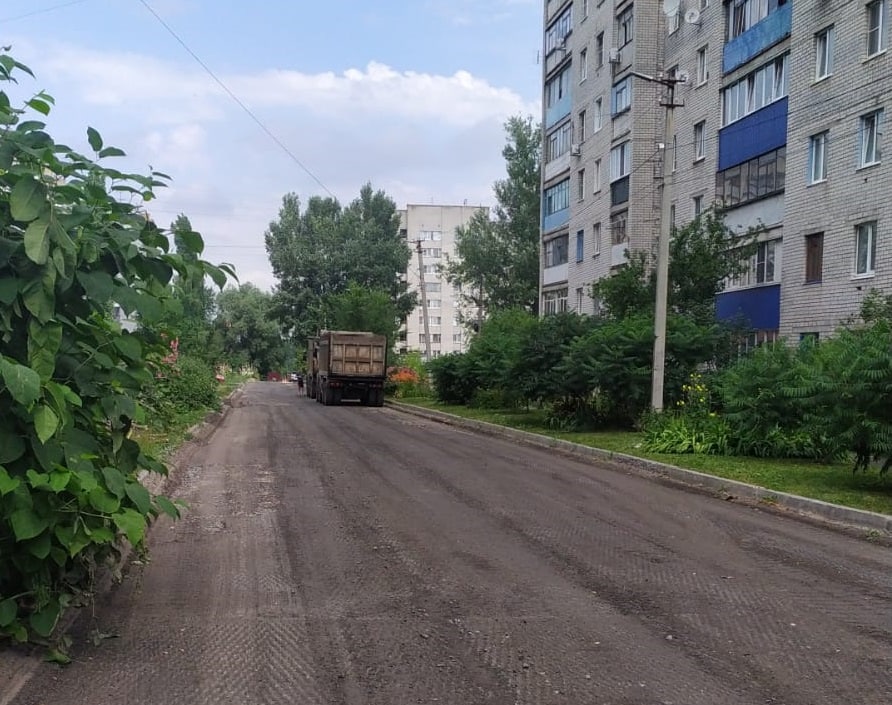 В настоящее время снимают старое дорожное покрытие методом фрезерования. Следующим этапом станет укладка двух слоев дорожного полотна: выравнивающего из асфальтобетонной смеси SP-16 и верхнего SP-11.
