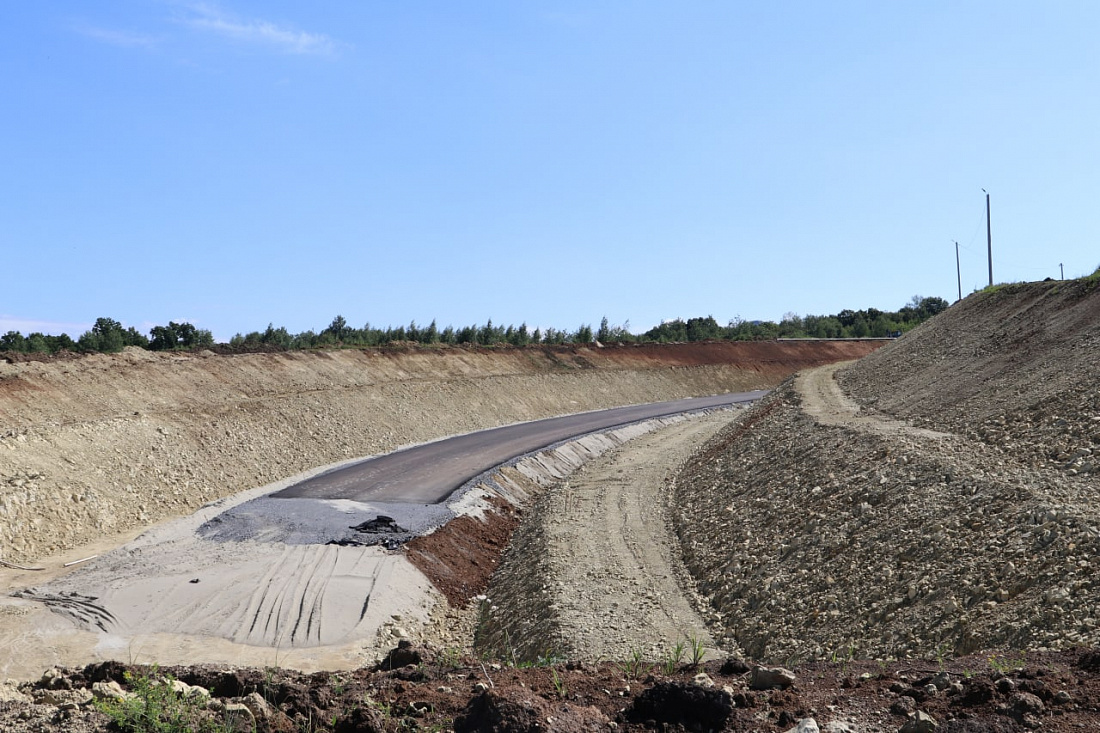 На объекте проделана работа по выемке грунта, устройству земляного полотна и дорожной одежды. Подрядная организация уже уложила более 8 тыс. кв. м асфальтобетонной смеси, это почти 70% общего объема нижнего слоя.