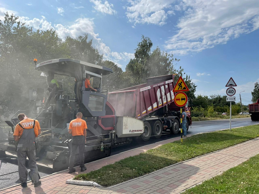 По информации подрядчика, устройство верхнего слоя из асфальтобетонной смеси SP-11 в объеме 1,2 тыс. тонн планируется завершить к субботе.