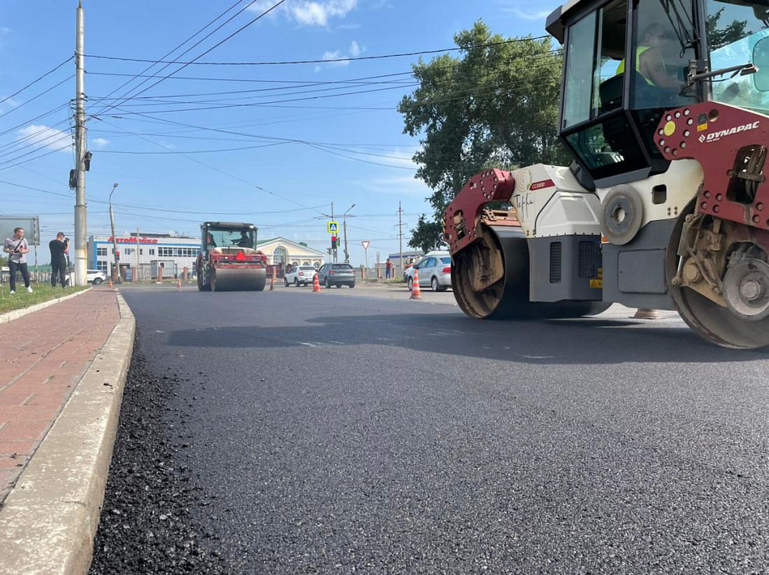На 1-й Строительной улице подрядчик приступил к устройству верхнего слоя дорожного покрытия. Ремонт ведется по нацпроекту «Безопасные качественные дороги».