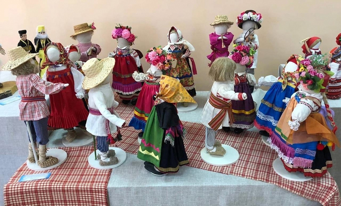 Куклы одеты в традиционные костюмы села Илёк Беловского района Курской области, они показаны во время пляски «Тимоня» на престольном празднике этого села.