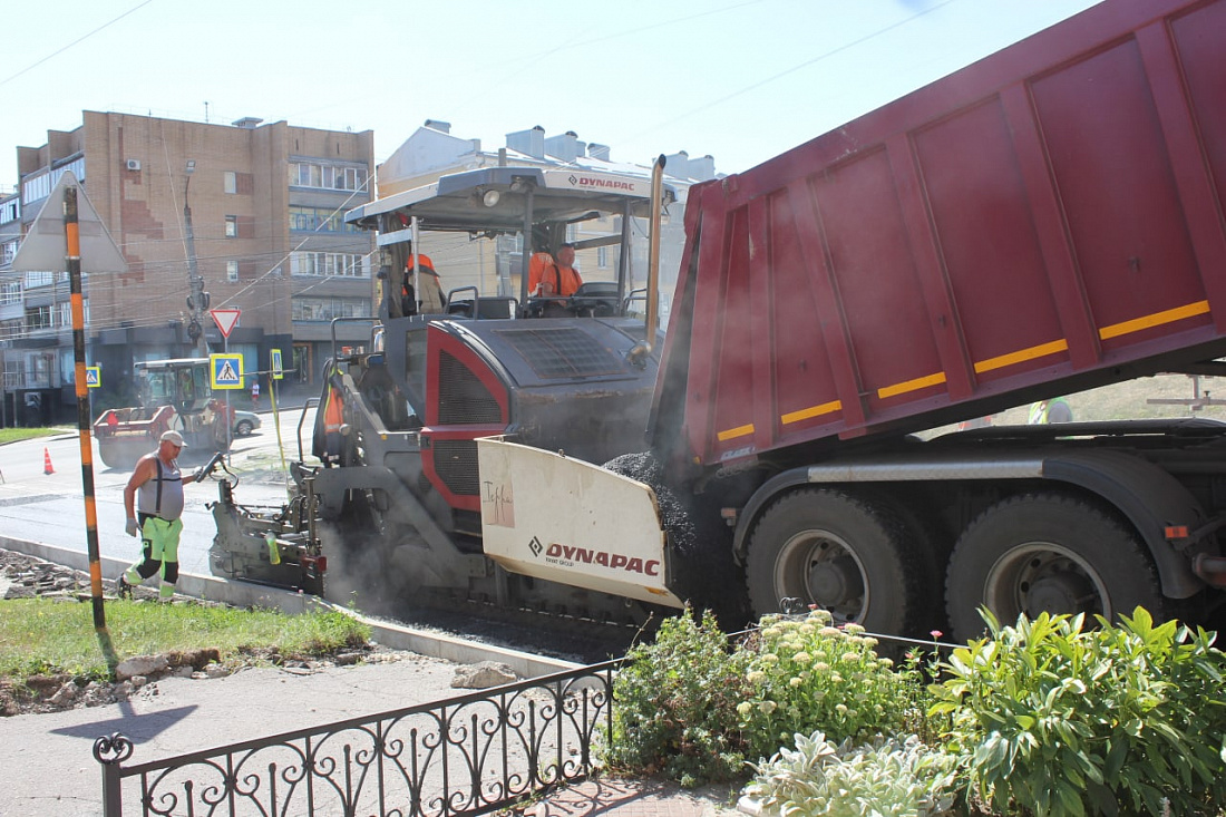 Сегодня работают на улице Ломоносова. Дорожники приступили к устройству выравнивающего слоя асфальтобетонного покрытия. Планируется уложить около 825 тонн асфальта.