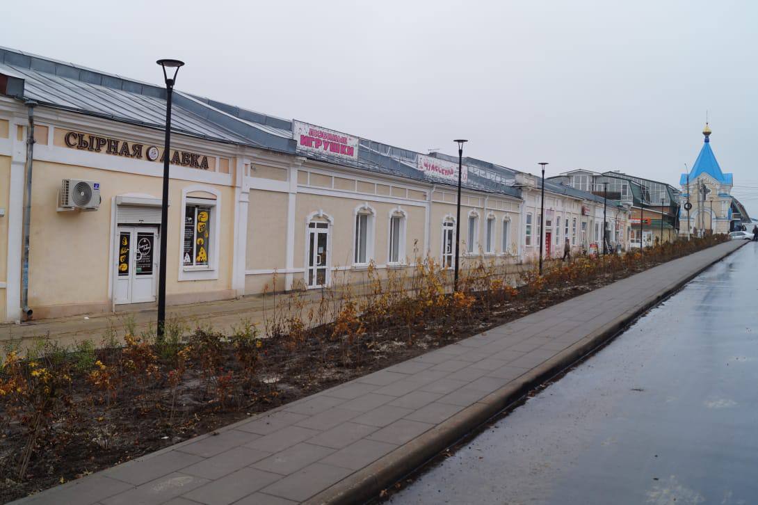Здесь полностью завершены демонтажные и земляные работы, установлена система видеонаблюдения. Проведены работы по озеленению территории: оформлены газоны, высажены кустарники и деревья. Подготовлены также фундаменты и основания под типовые малые архитектурные формы: скамейки, урны, информационные стенды, качели, велопарковки. Кроме того, согласно проекту на территории планируется установить открытые торговые прилавки и ярмарочные киоски.