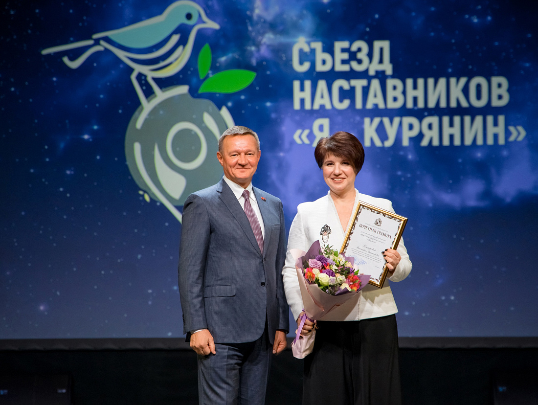Губернатор Курской области Роман Старовойт и заместитель Министра просвещения Российской Федерации Татьяна Васильева приняли участие в торжественной церемонии открытия съезда наставников «Я – курянин». Глава региона наградил отличившихся наставников почетными наградами Курской области, а заместитель министра вручила ведомственные награды Минпросвещения России.