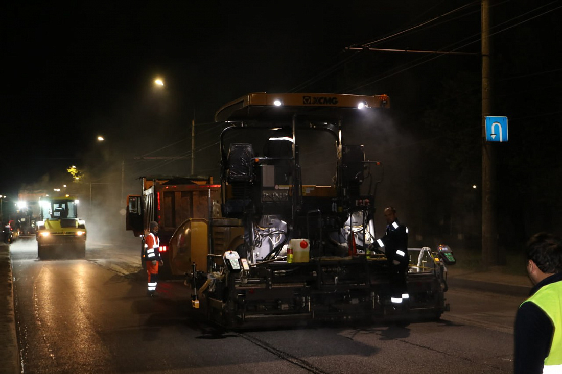 В Курске на проспекте Кулакова специалисты приступили к укладке верхнего слоя дорожного покрытия