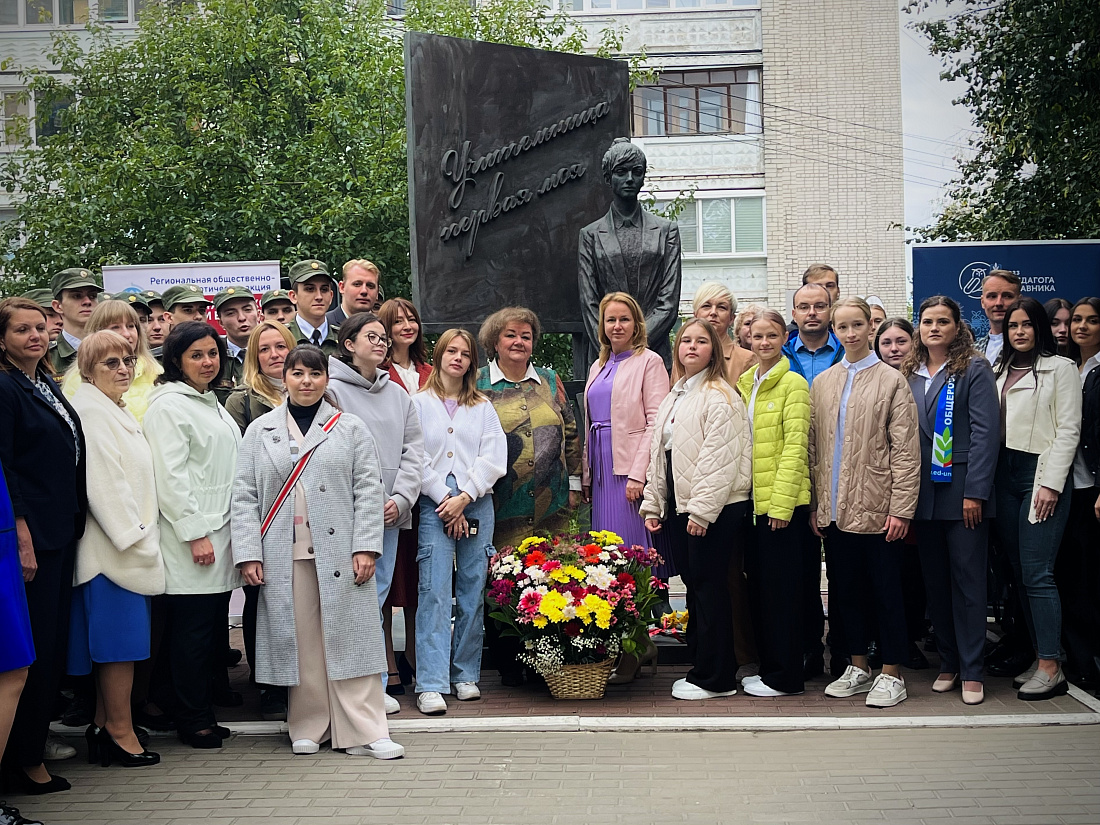 В День учителя в Курске прошел торжественный митинг. Цветы к памятнику первой учительнице возложили сотрудники Министерства образования и науки Курской области, Курского института развития образования, представители регионального Профсоюза образования, педагоги, студенты и школьники.