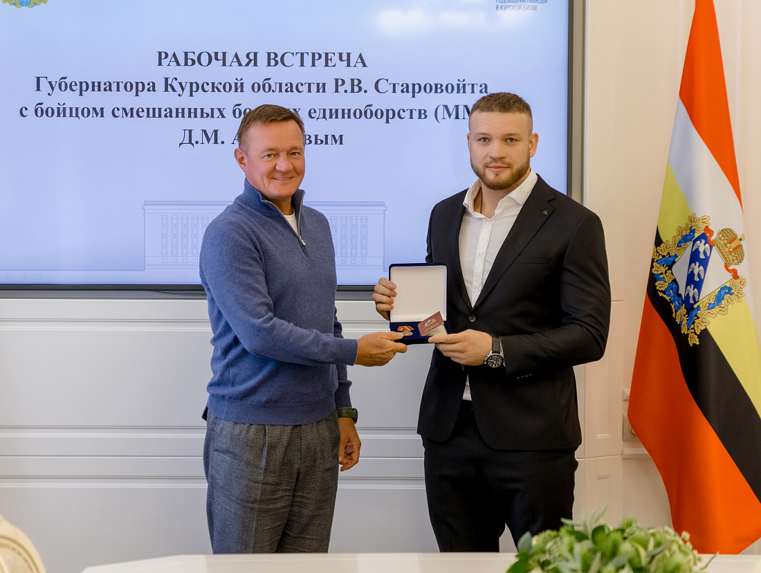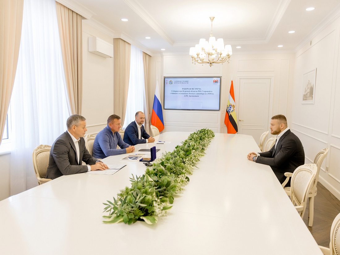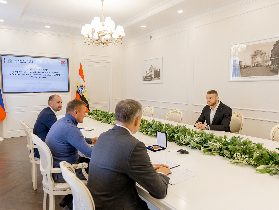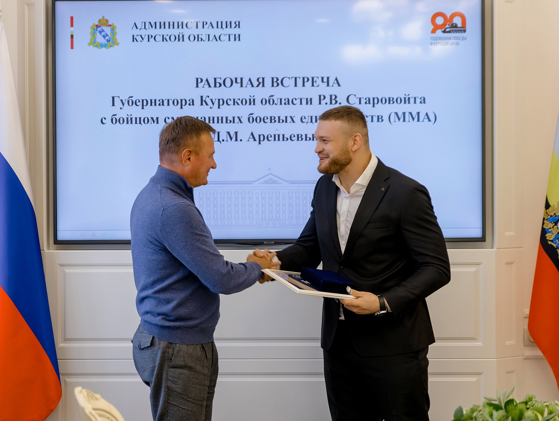 Губернатор Курской области Роман Старовойт встретился с бойцом смешанных боевых единоборств Даниилом Арепьевым