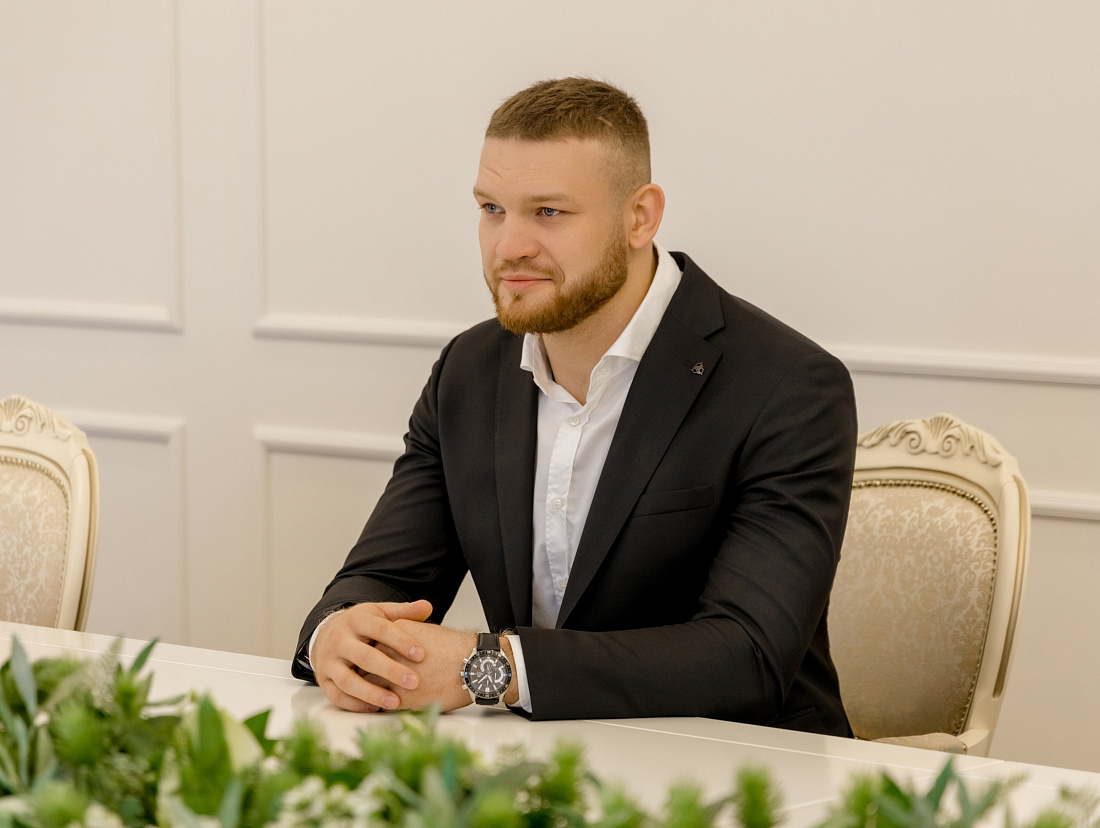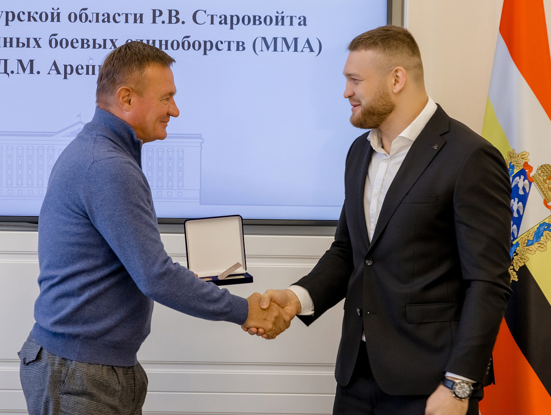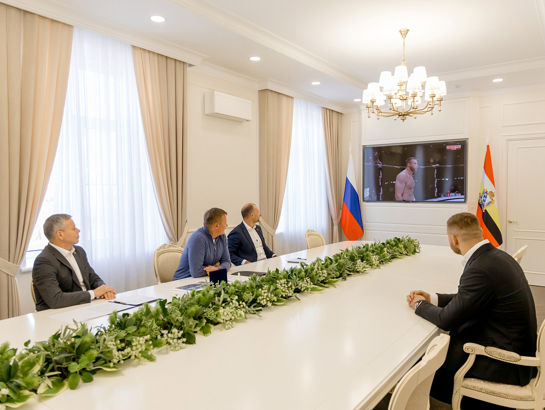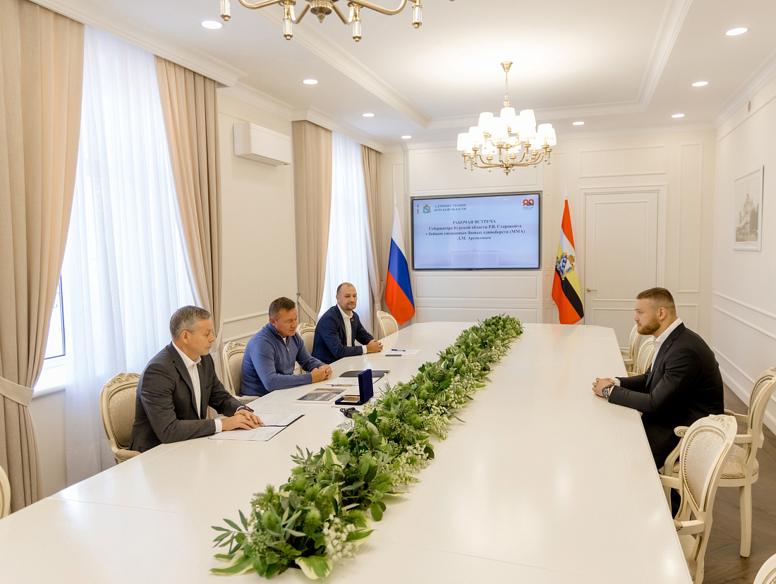 Губернатор Курской области Роман Старовойт встретился с бойцом смешанных боевых единоборств Даниилом Арепьевым