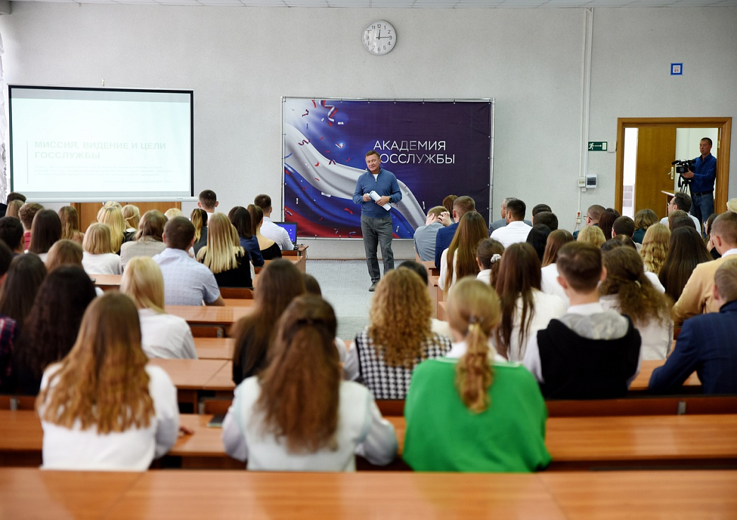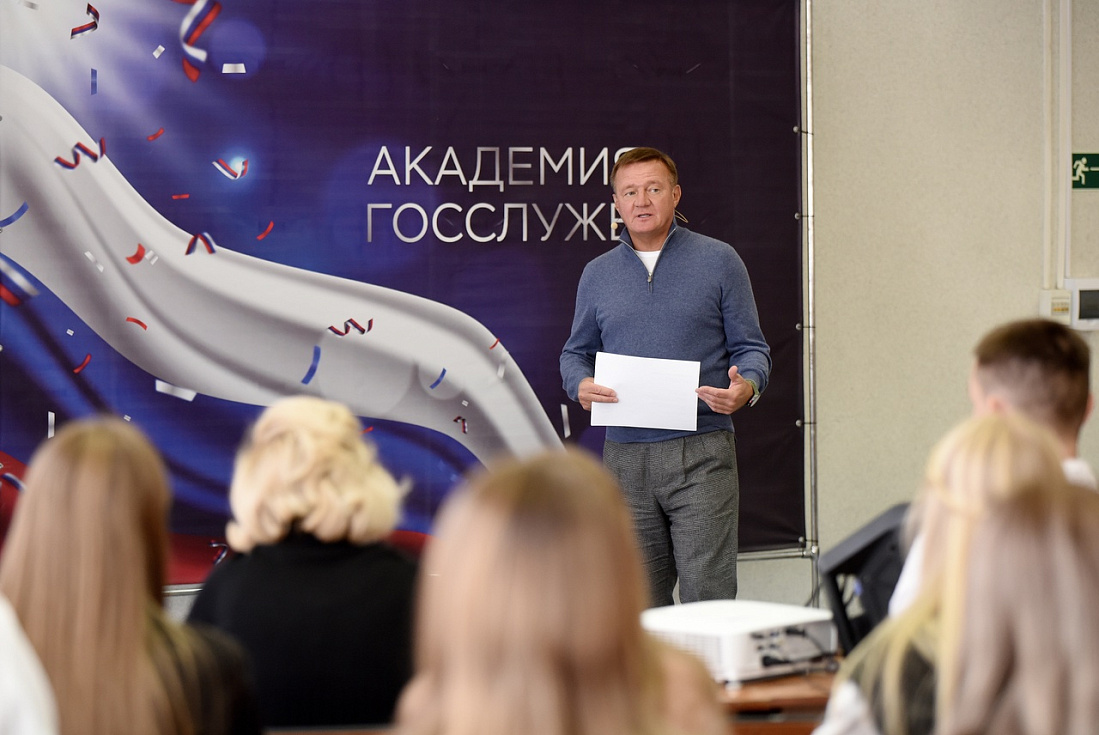 Губернатор Курской области Роман Старовойт в день Международного Дня учителя выступил с лекцией для студентов Курской академии государственной и муниципальной службы. Глава региона рассказал ребятам о собственном трудовом пути, раскрыл некоторые особенности работы на госслужбе и на конкретных примерах показал проблемы, с которыми сталкиваются госслужащие в своей работе.