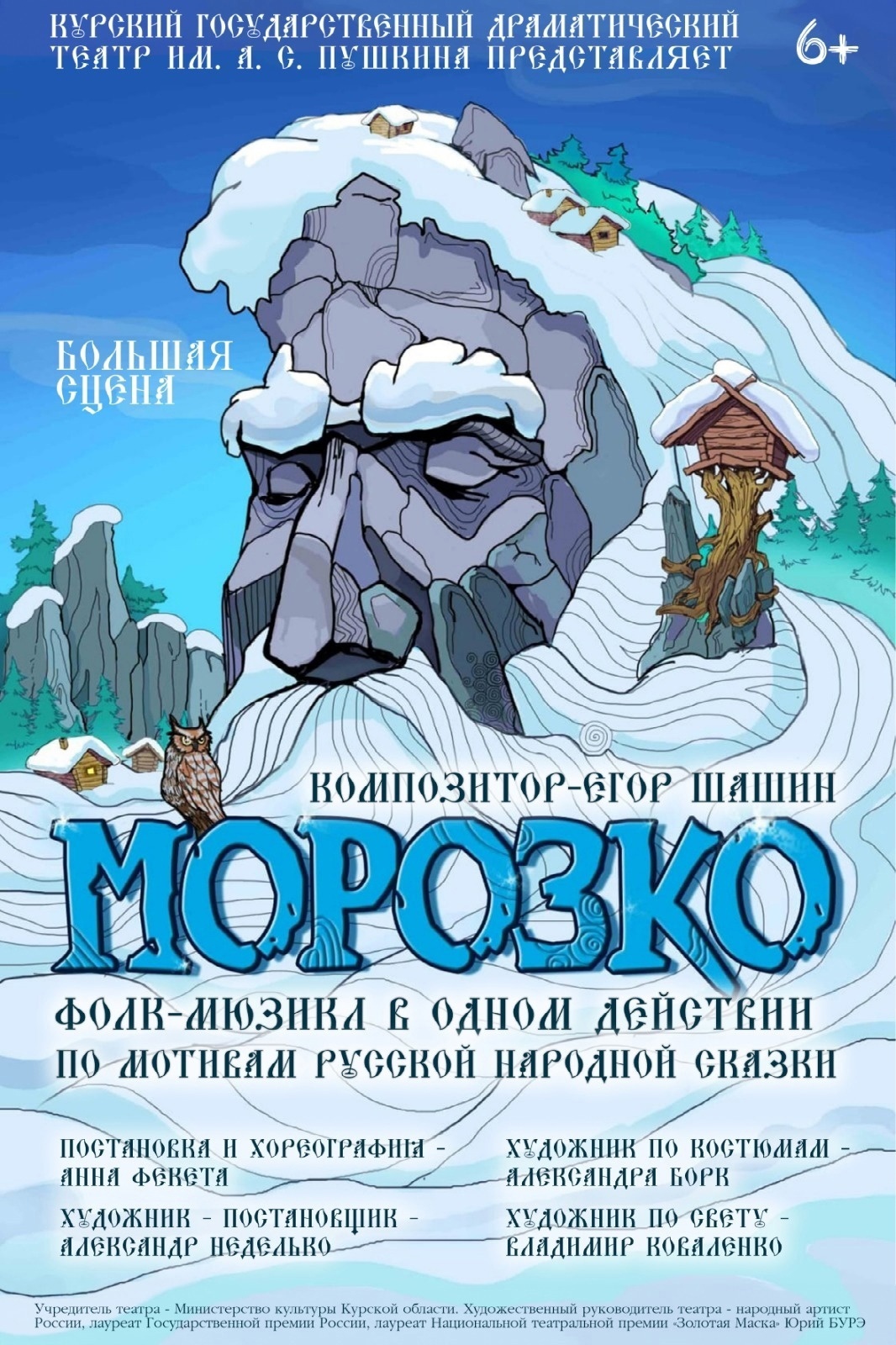 На большой сцене будет представлен мюзикл-предание «Морозко». Это масштабная и технически сложная постановка для зрителей старше 6 лет. Спектакль о добре и настоящей любви. Герои фолк-мюзикла расскажут историю отзывчивой Настеньки, которую мачеха выгоняет в лес. В ночном лесу девушка встречает волшебника Морозко и выполняет его задания в надежде на спасение. Колоритные костюмы, объёмные декорации, многоплановый свет и видеопроекция, оригинальная музыка и яркая хореография – постановка будет интересна и детям, и взрослым.