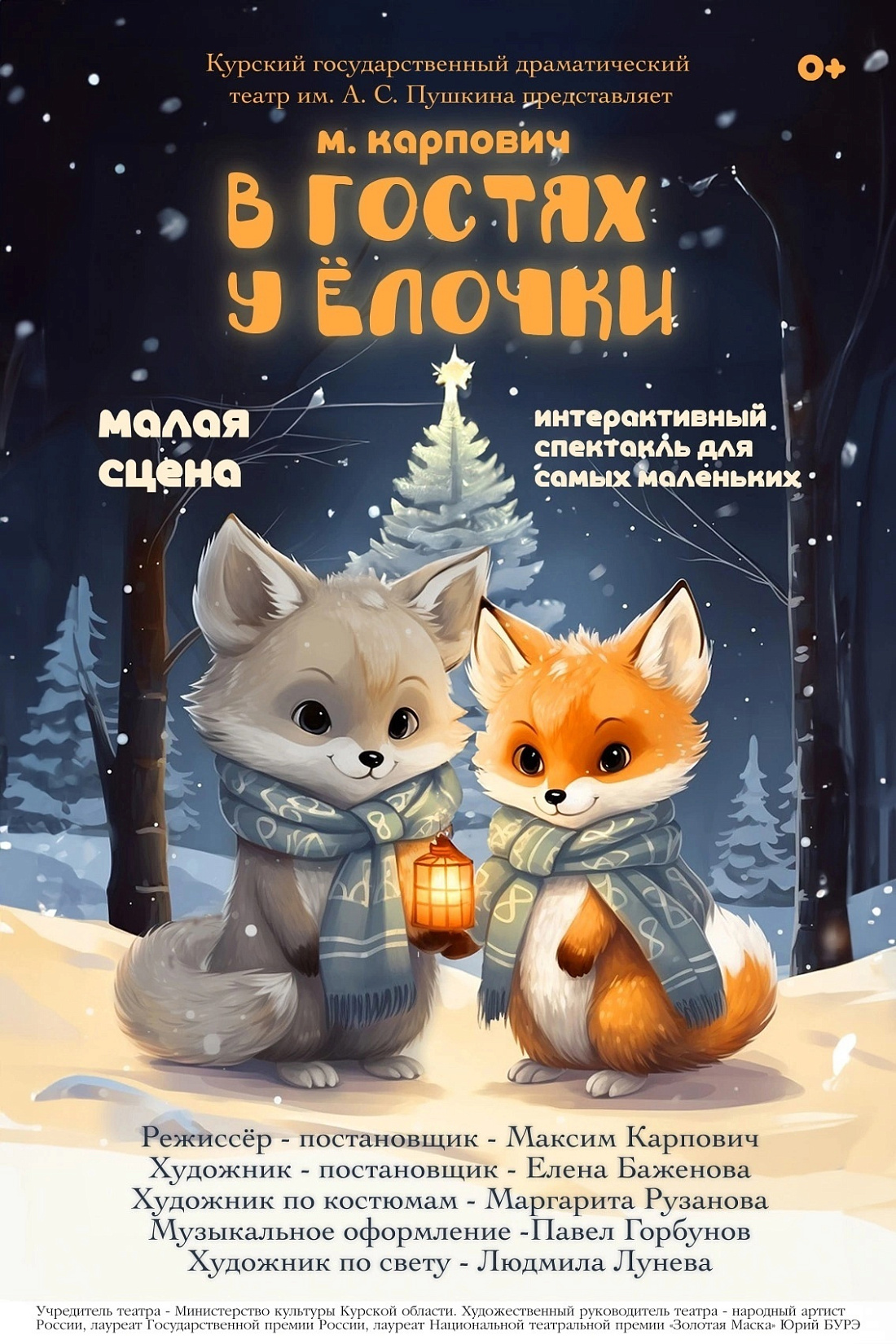 На малой сцене для самых маленьких артисты расскажут историю «В гостях у ёлочки». Интерактивный спектакль позволит поиграть, отгадать зимние загадки, познакомиться с волшебными обитателями леса и встретиться с Дедушкой Морозом.