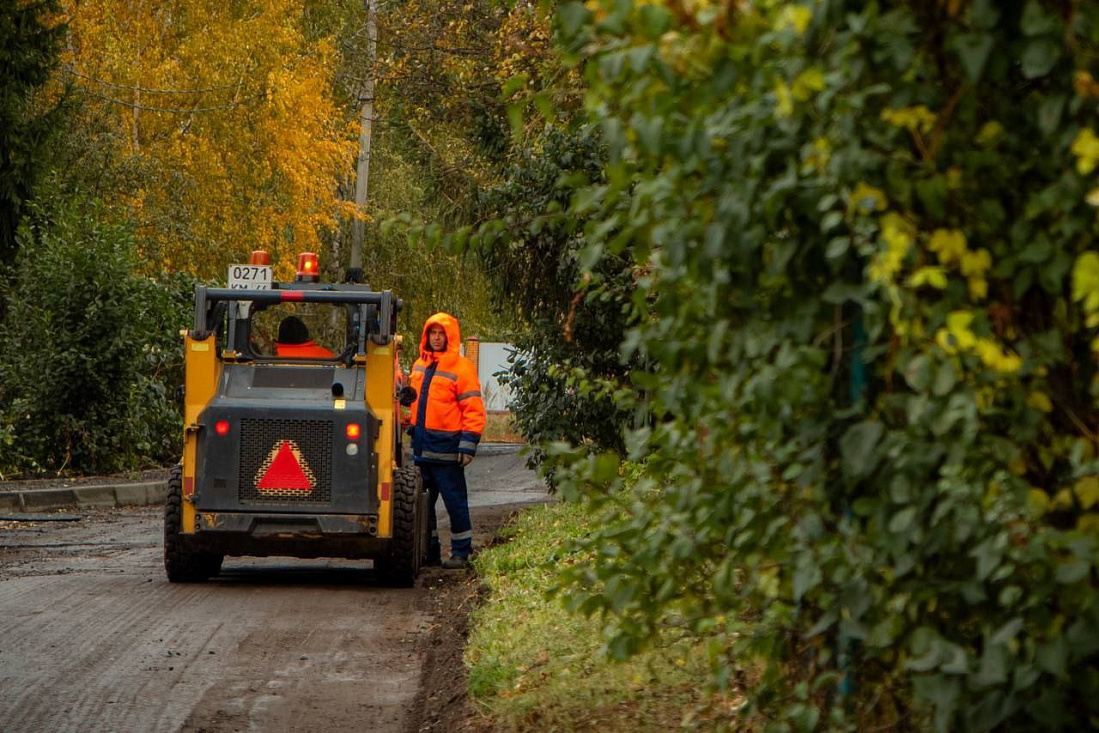 На улице Рябиновой рабочие завершили фрезеровку покрытия площадью 8400 кв. м. Позже на место среза уложат выравнивающий и верхний слои из асфальтобетонной смеси.