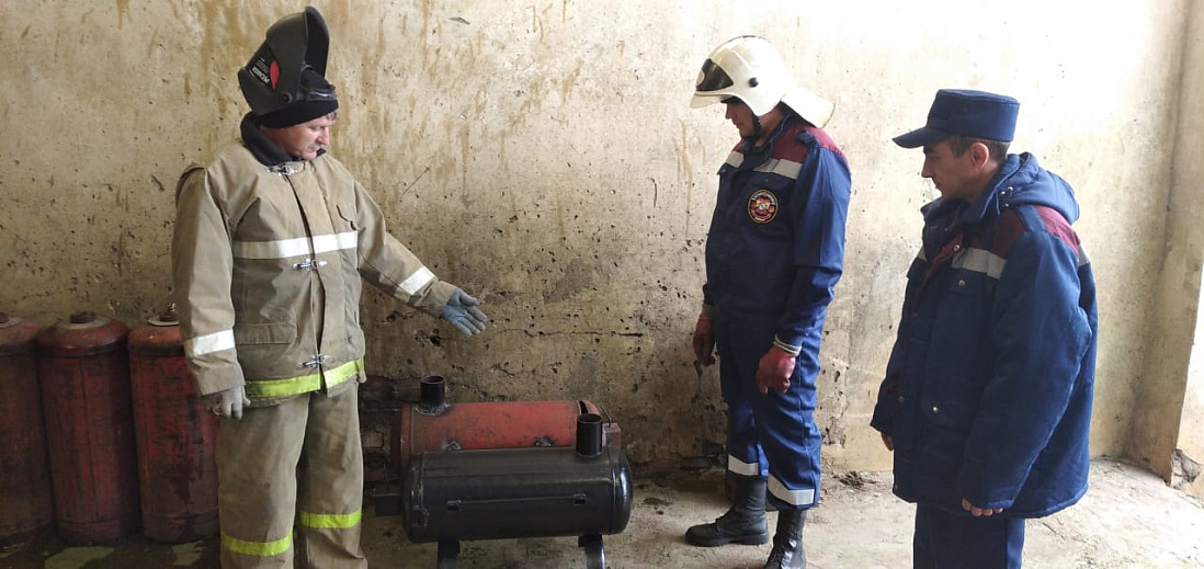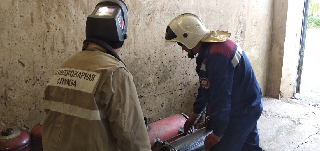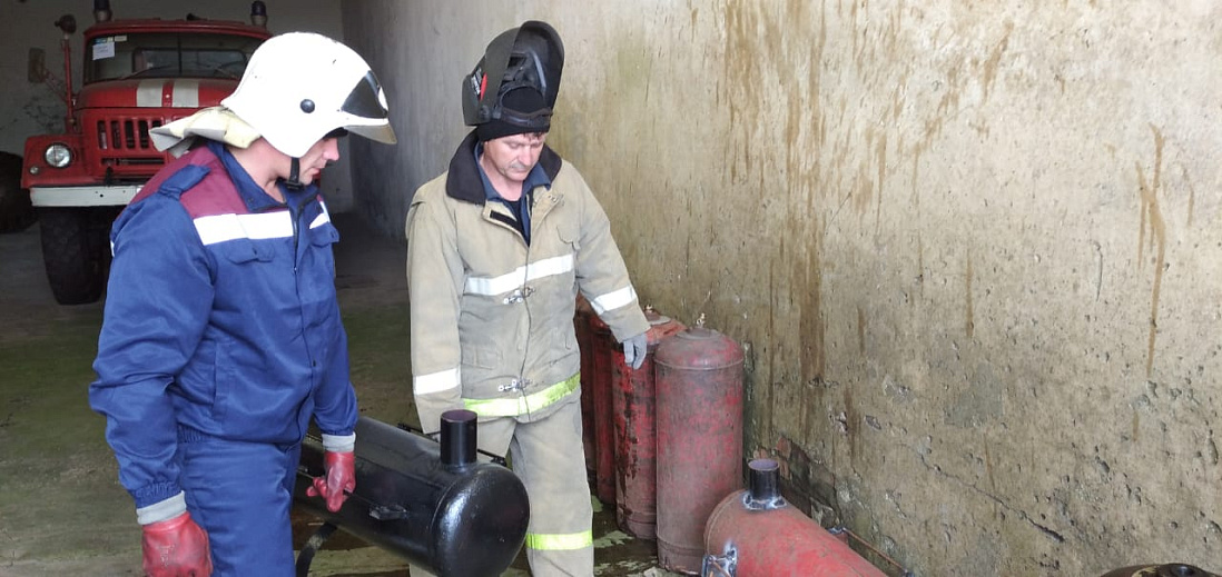 Пожарный Алексей Лысенко, командир отделения Сергей Панков и инструктор противопожарной профилактики пожарной части Фатежского района Сергей Гудков проявили инициативу и решили помочь нашим военнослужащим. Отопительные печи они изготавливают из списанных газовых баллонов: сначала наносят разметку, затем режут металл и варят детали.