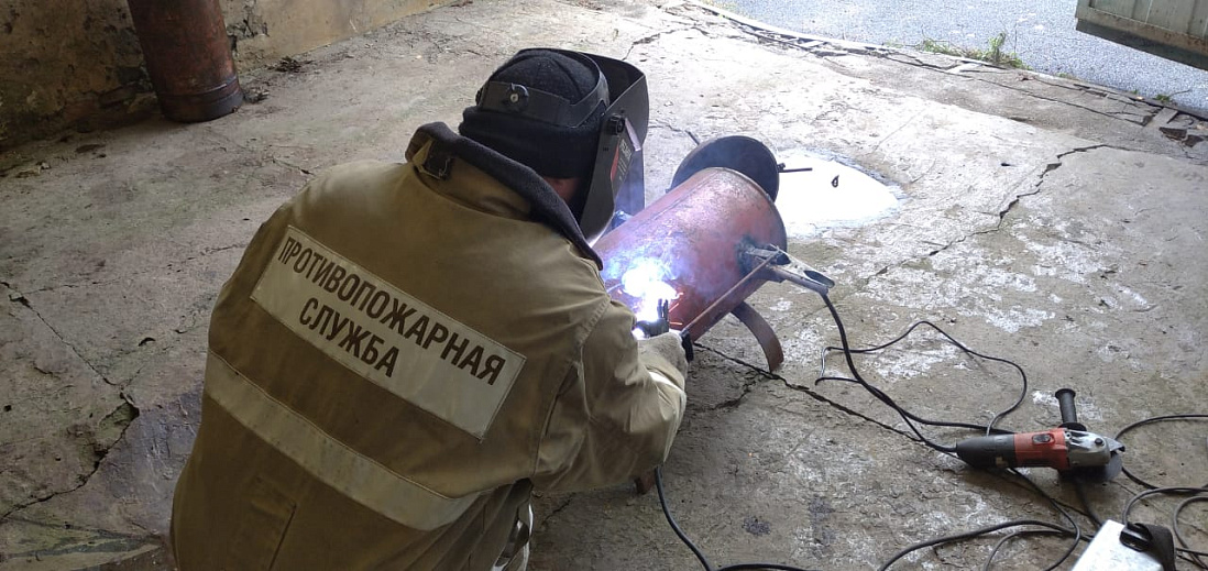 Работники Противопожарной службы изготавливают отопительные печи для участников спецоперации
