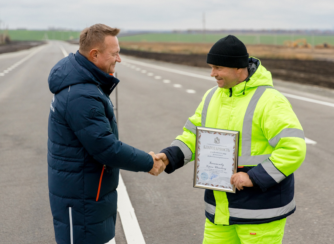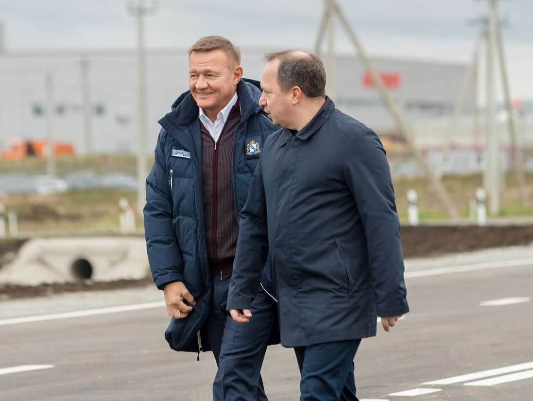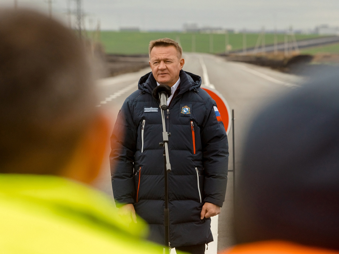 Губернатор Курской области Роман Старовойт принял участие в торжественной церемонии открытия рабочего движения по подъездной автомобильной дороге к комбикормовому заводу и по новой дороге к мясохладобойне от трассы «Крым» - птицефабрика «Курская» агропромышленного холдинга «Мираторг».