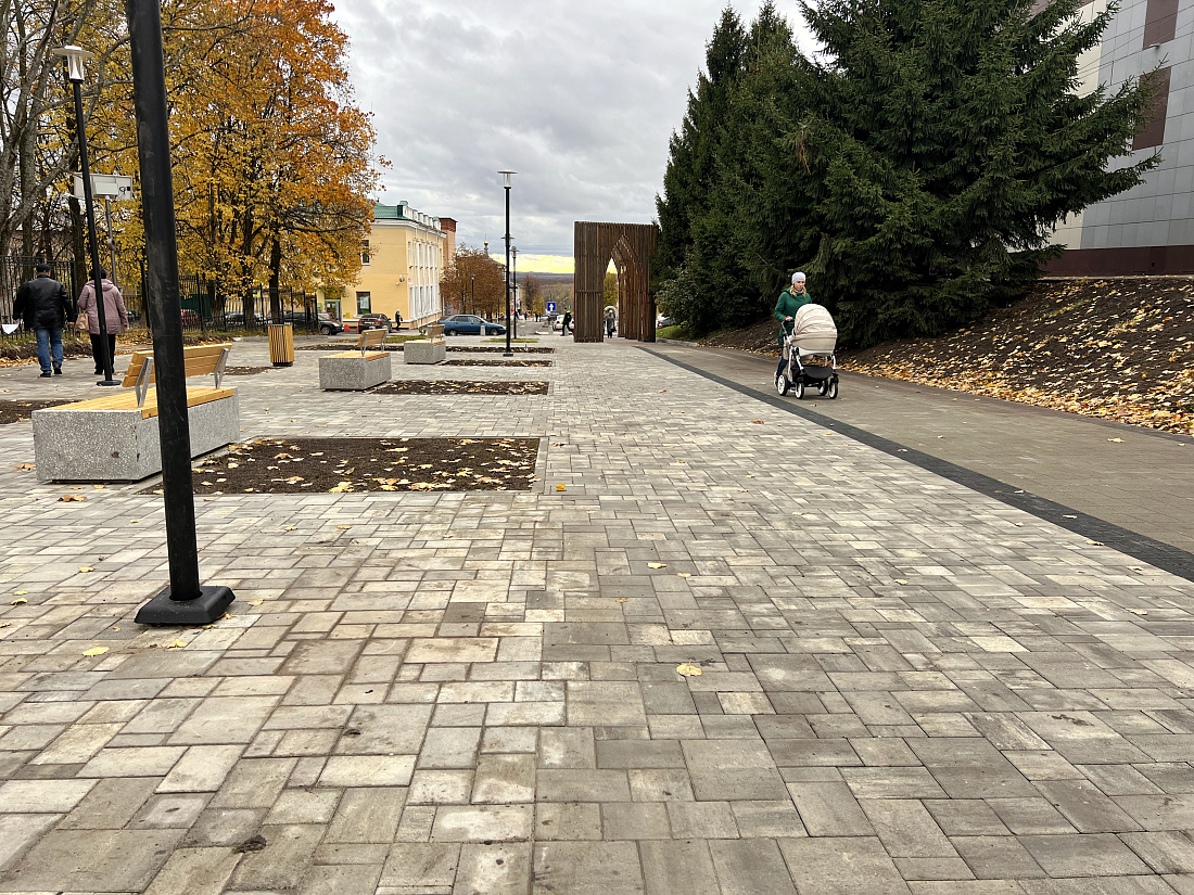 Площадь перед центральным универмагом превратится в пространство досуга и отдыха. Здесь также появились информационные таблички, выложена новая тротуарная плитка, обновлено освещение.