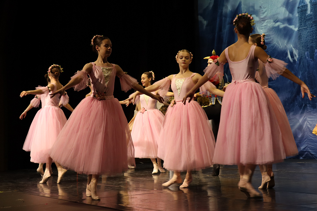 Вместе с артистами на сцену вышли воспитанницы курской балетной школы «Антре». Юные балерины представили 8 номеров, среди которых «Полонез», «Мазурка» и «Неаполитанский танец». В выступлении приняли участие 50 маленьких артистов.