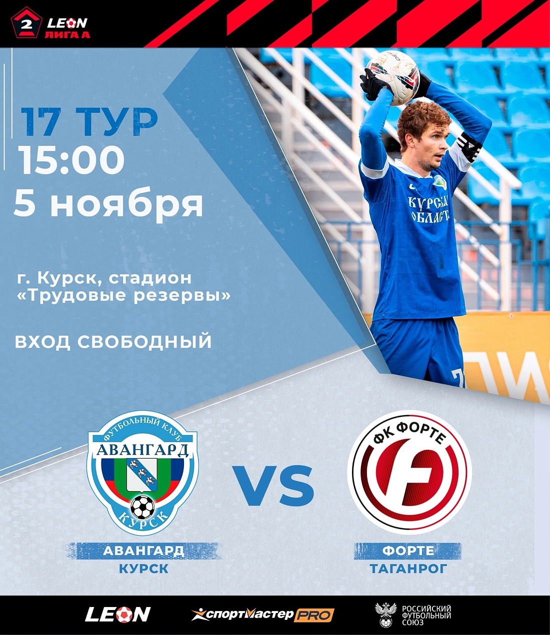 Наша команда проведет игру с футбольным клубом «Форте» из Таганрога в рамках LEON — Вторая Лига А. «Авангард» и «Форте» ранее встречались всего один раз, в первом круге куряне одержали победу со счетом 1:0.