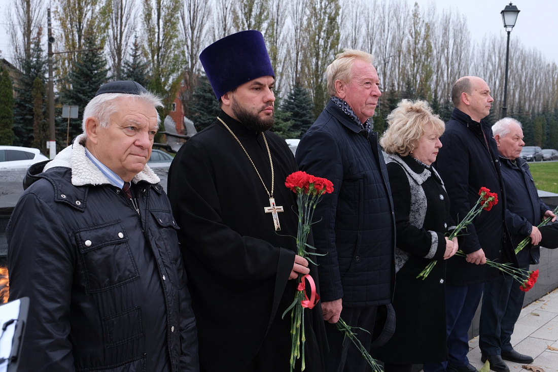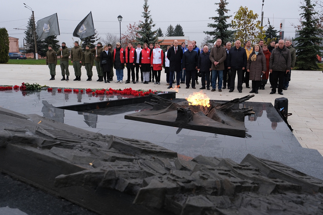На мемориале «Курская дуга» у Вечного огня на Могиле Неизвестного Солдата Курской земли состоялась церемония возложения цветов, посвященная Дню народного единства. В ней приняли участие представители Правительства Курской области, лидеры национальных диаспор и религиозных конфессий, находящихся на территории Курской области, руководители ветеранских организаций, «Волонтеры Победы», личный состав центра «Патриот».